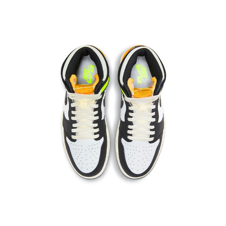 Jordan Brand started 2021 on a high note with the Jordan 1 High Volt Gold. The Volt Gold offers a new take on the renowned Black Toe theme by implementing new materials and features that contribute to a reconstructed design aesthetic.In familiar Black Toe color blocking, the upper of the Jordan 1 Volt Gold is composed of white, black, and yellow leather. A Volt yellow-tinted panel donning the Jordan Wings logo wraps the ankle. Unlike OG Jordan 1 designs that feature double stitch reinforcement, the Volt Gold utilizes single stitch reinforcement on its overlays, creating dimensionality with exposed edges. A nylon tongue with exposed foam edges and reverse transparent tongue label emphasize Jordan s reconstructed design approach. A yellowed midsole and black outsole offer an aged look.The Jordan 1 High Volt Gold released in January of 2021 and retailed for $170.