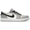 The Jordan 1 Retro Low OG Barons is a commemorative sneaker that celebrates the 30th anniversary of Michael Jordan s time with the Birmingham Barons, a Double-A affiliate team of the Chicago White Sox.The low-top Barons Jordan 1 Retro Low OG boasts a leather upper in white, black, and Wolf Gray, a colorway that pays tribute to the baseball team s colors. While the base comes in white, Wolf Gray overlays provide subtle color blocking. Small perforations on the vamp and the mesh material of the tongue allow the foot to breathe, even though the upper is constructed entirely from smooth leather. The flat tongue displays a woven tag with NIKE AIR lettering in Wolf Gray, while the Air Jordan Wings can be found on the heel tab.Our experts at Newsole like the way the black accents on the laces, the Swoosh logos, and the leather heel tab contrast the Wolf Gray and white across the upper. The Jordan 1 Retro Low OG Barons was released on July 20, 2024, and sold for $140.