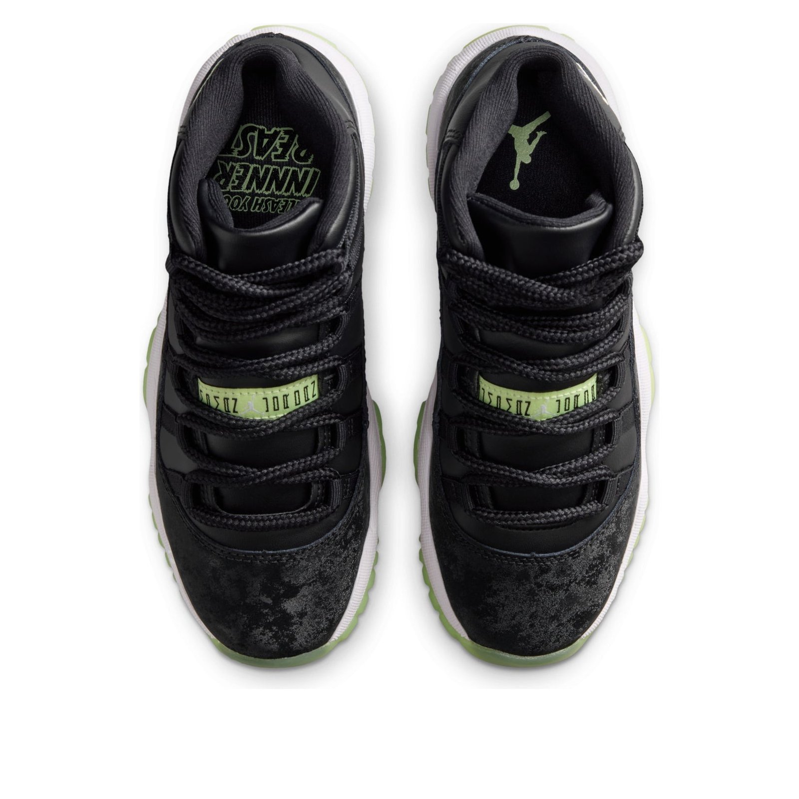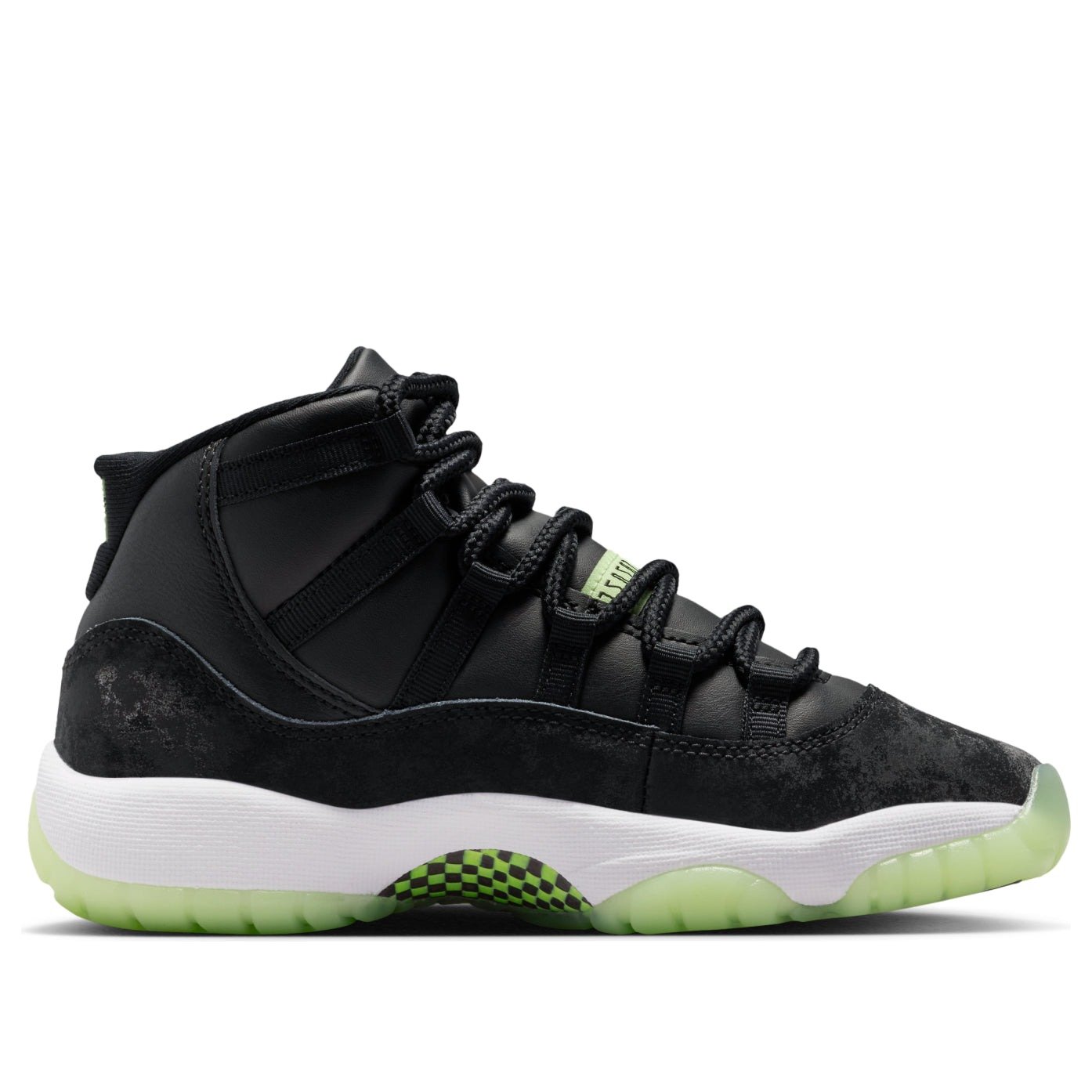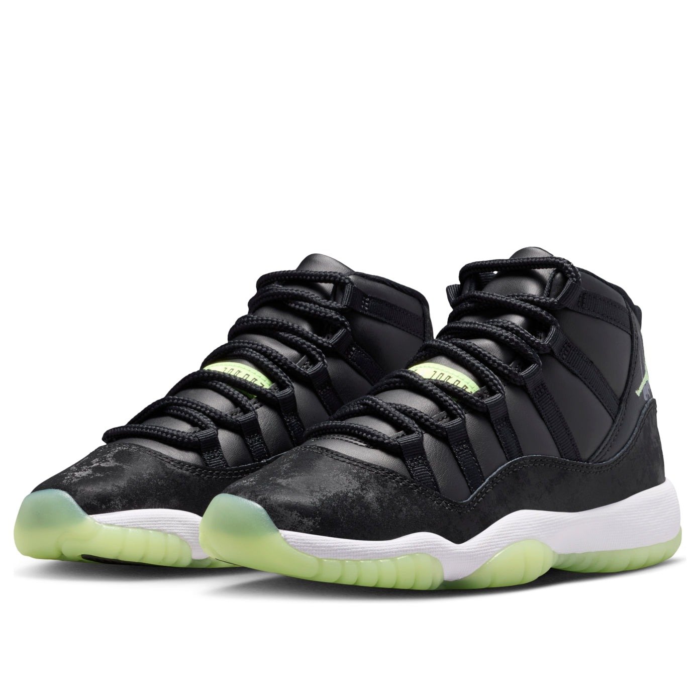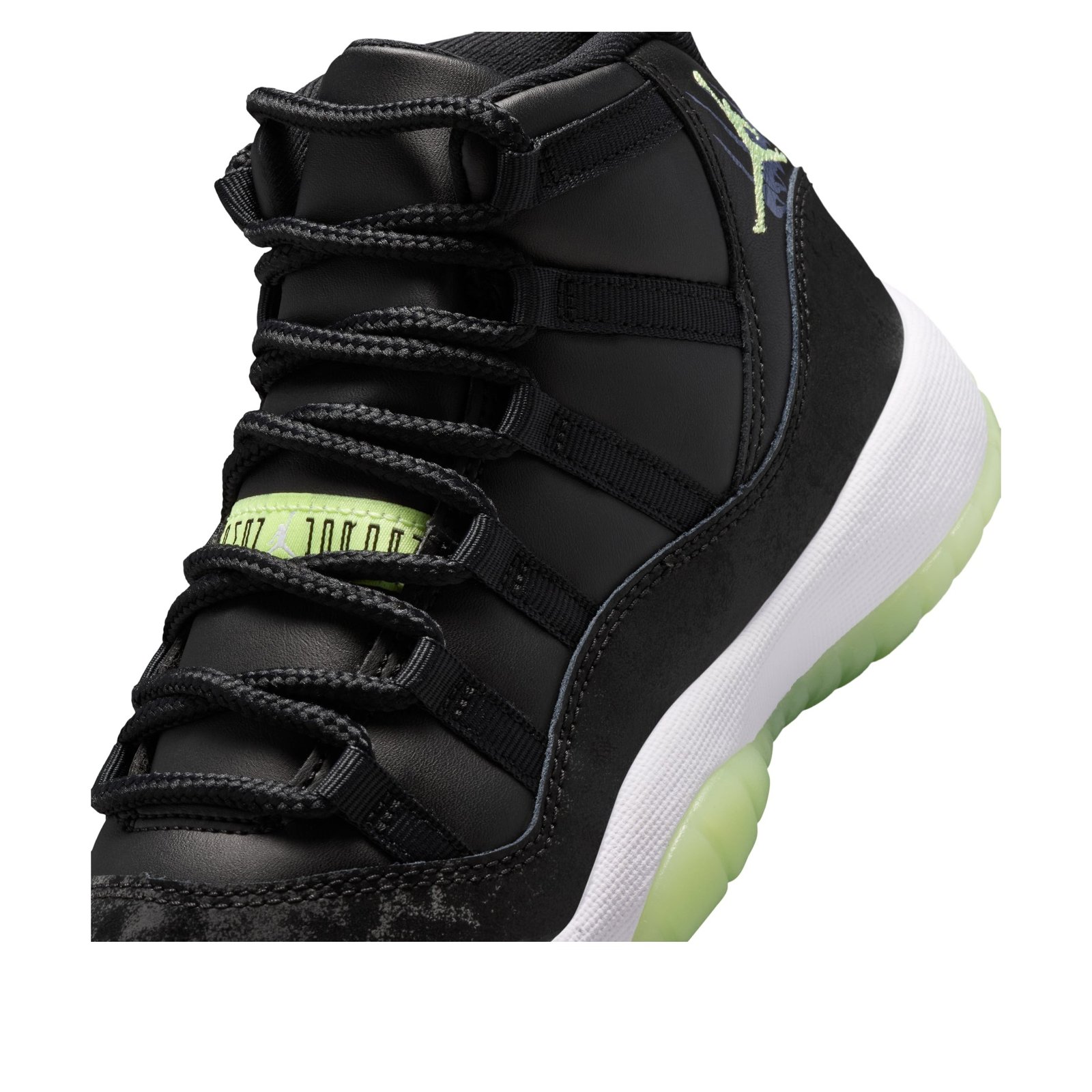 The Jordan 11 Retro Black Barely Volt (GS) features a Black/Barely Volt/Dark Raisin/White colorway. This Jordan 11 Retro was first released for $185 on October 04, 2025.