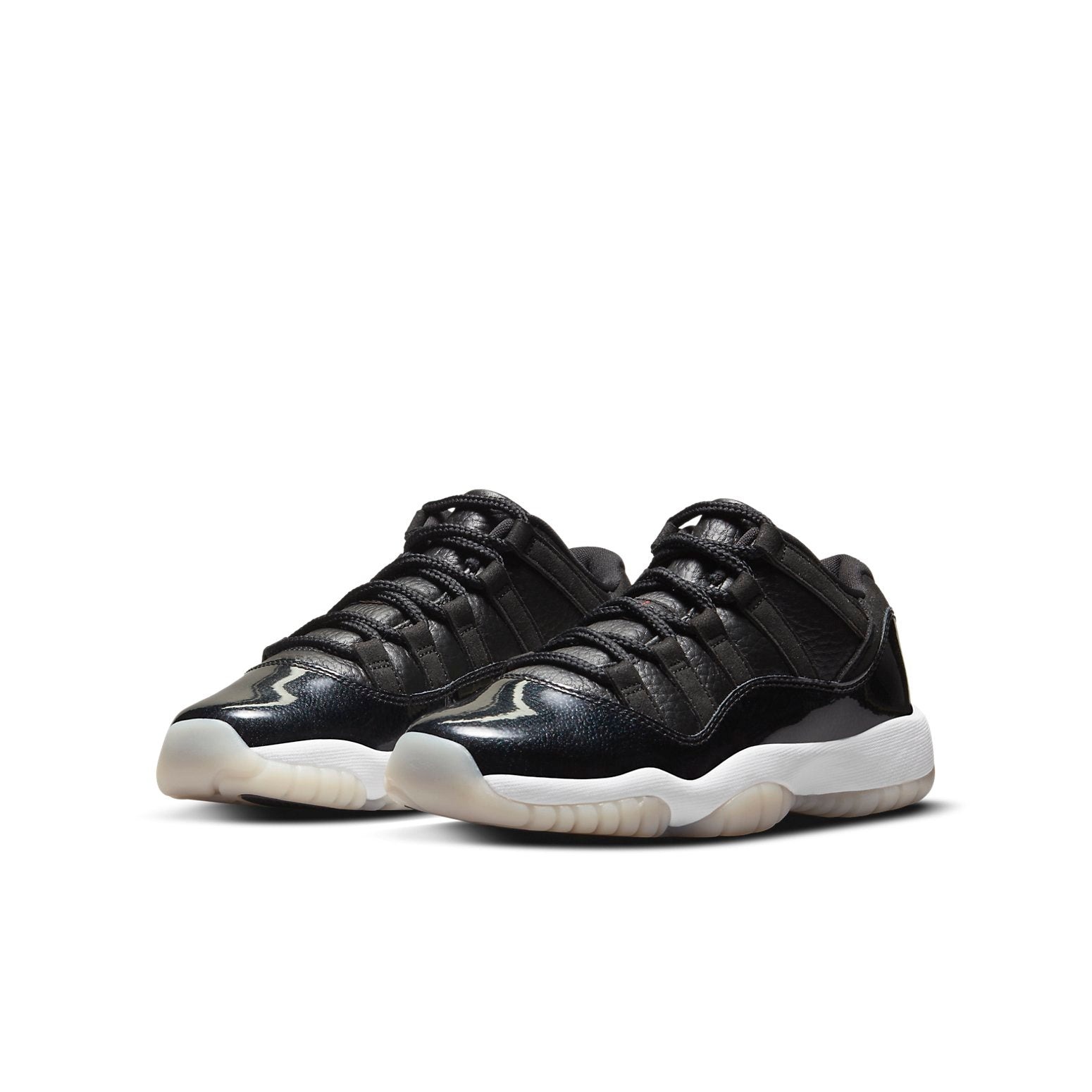 With its supportive structure and comfortable sole, the Air Jordan 11 Retro Low 72 10 (GS) for grade schoolers works well for more intense exercise, as well as everyday walking around. This unique and supportive model has an off-white, cushioned sole, with a bright white midsole. The shoe s body is made up of black leather, both smooth and pebbled. It is a low rise model that ends at the bottom of the ankle. The model was designed to be comfortable for long periods. The Air Jordan 11 Retro Low 72 10 (GS) for grade schoolers had an initial release date of May 2022. The starting retail price for this model was $190.