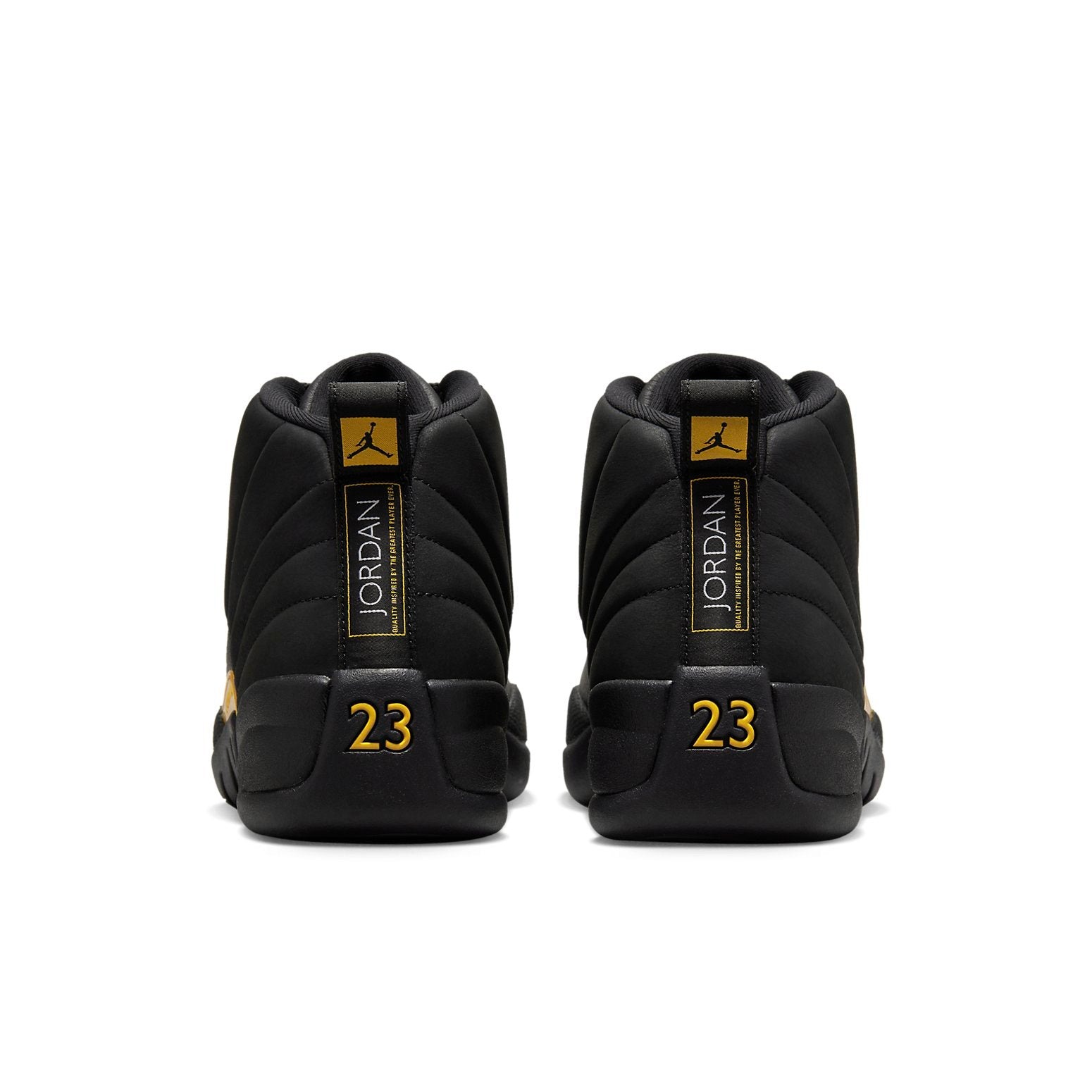 The Air Jordan 12 Retro Black Taxi is a monochromatic black sneaker with taxi-yellow hits that create visual contrast.The upper of this Retro Air Jordan 12 is constructed of both smooth and textured black leather. A taxi overlay features the word “Jumpman,” taxi containment straps have a Jumpman embossed on them, and the heel sports a taxi “23