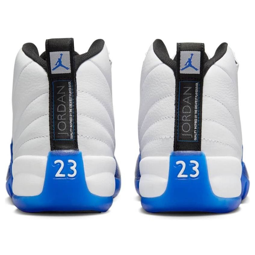 The Jordan 12 Retro Blueberry (GS) brings a fresh twist to the iconic silhouette, designed specifically for younger sneaker enthusiasts. This grade school edition showcases a crisp white leather upper, accented with striking black and game royal blue details. The distinctive textured mudguard, a hallmark of the Air Jordan 12, wraps around the shoe in a rich royal blue, giving it its ‘Blueberry’ moniker. The shoe’s design is completed with the classic Jumpman branding on the tongue and heel, maintaining the model’s legendary status. Comfort and performance are at the forefront of this retro design. The full-length Zoom Air unit provides responsive cushioning, while the robust leather construction ensures durability for active kids. The shoe’s sleek profile and eye-catching colorway make it versatile enough for both casual wear and light athletic activities. Our experts state this product is great for young Jordan fans looking for a stylish and comfortable sneaker that stands out on the playground or in the classroom.