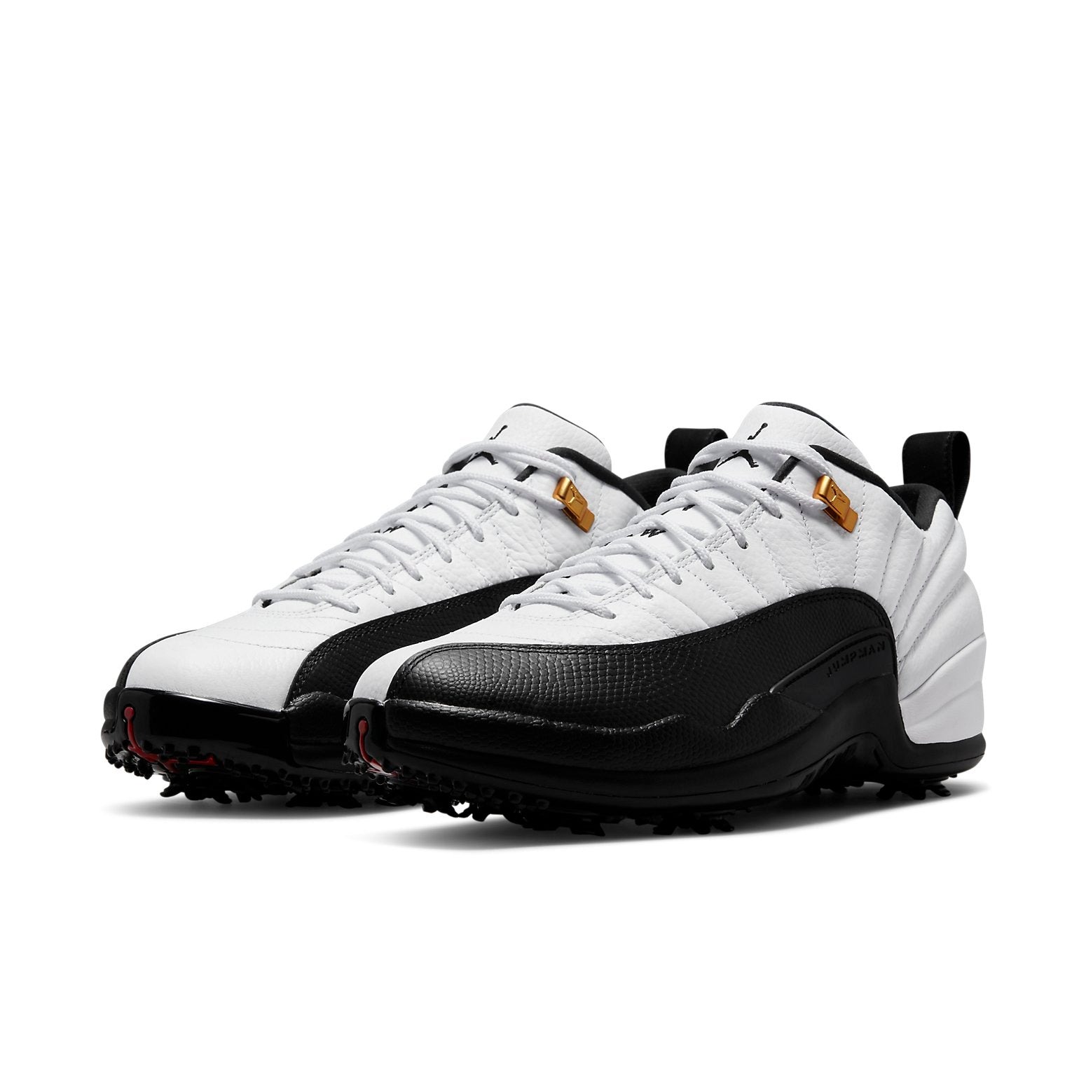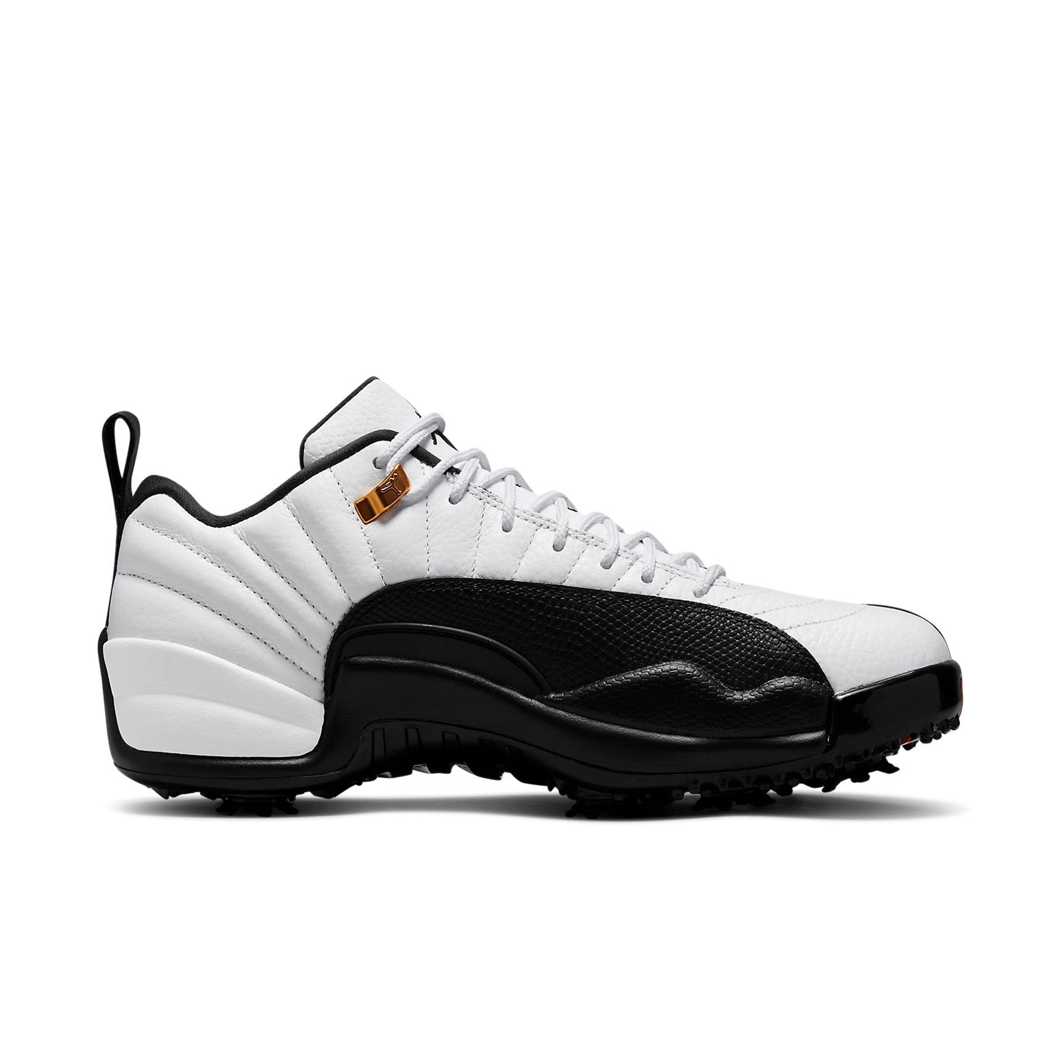 Reimagining the original Air Jordan 12 Taxi, the Jordan 12 Retro Low Golf Taxi brings the renowned colorway from the hardwood to the fairways. In traditional fashion, it features a white tumbled leather paneled upper with textural black leather mudguards. At the base, a modified sole with deep grooves offers maximum traction and support.The Jordan 12 Retro Low Golf Taxi released in March of 2022 and retailed for $220.