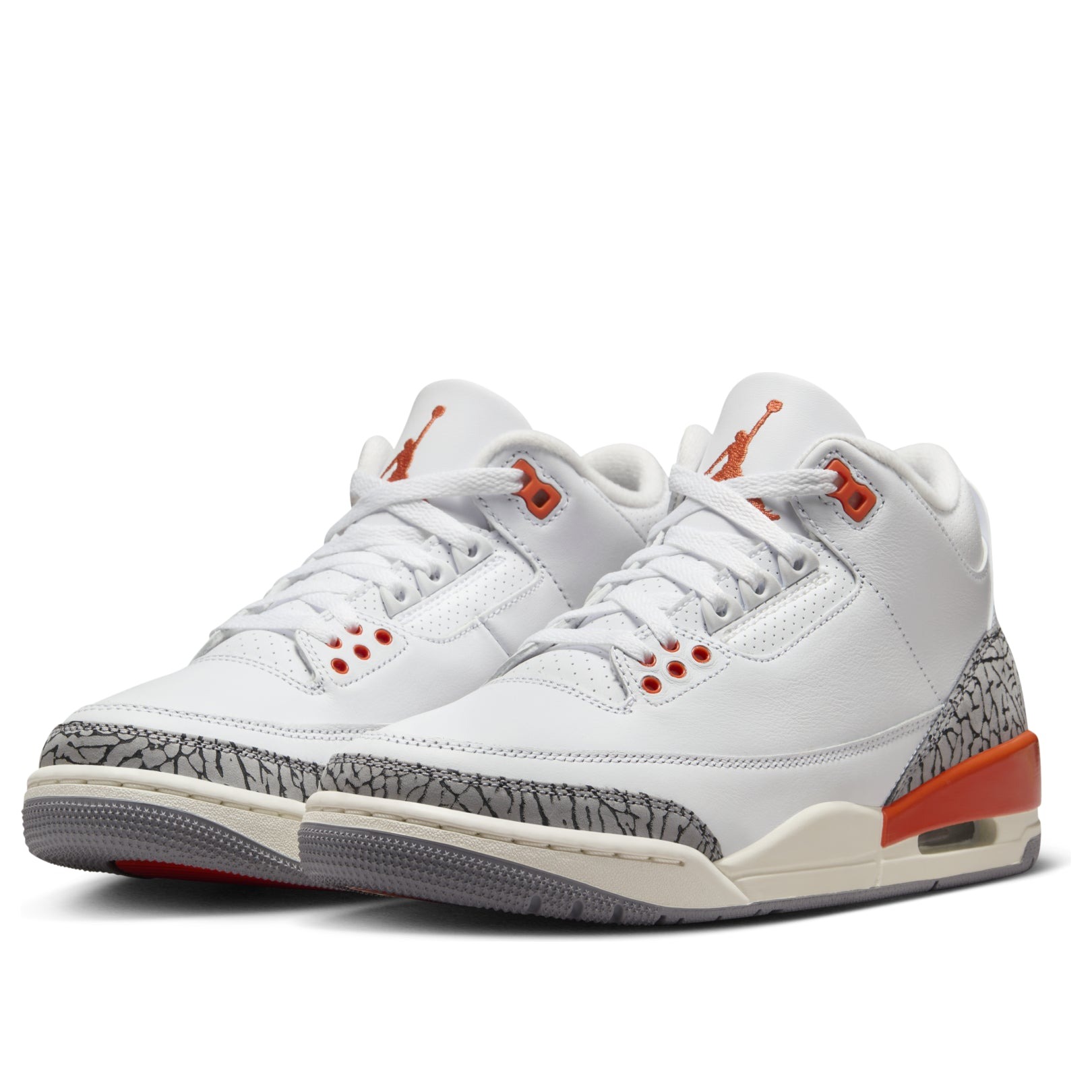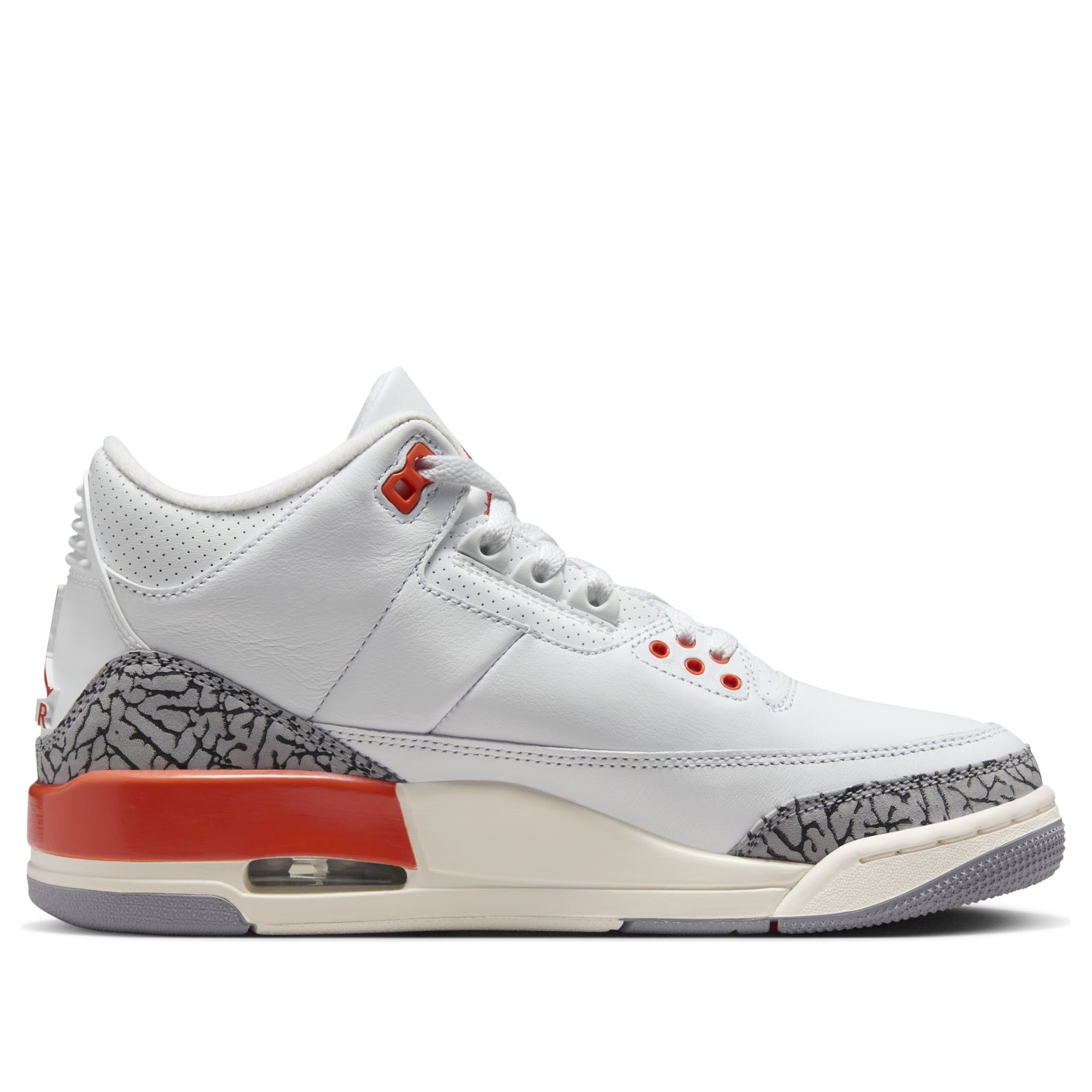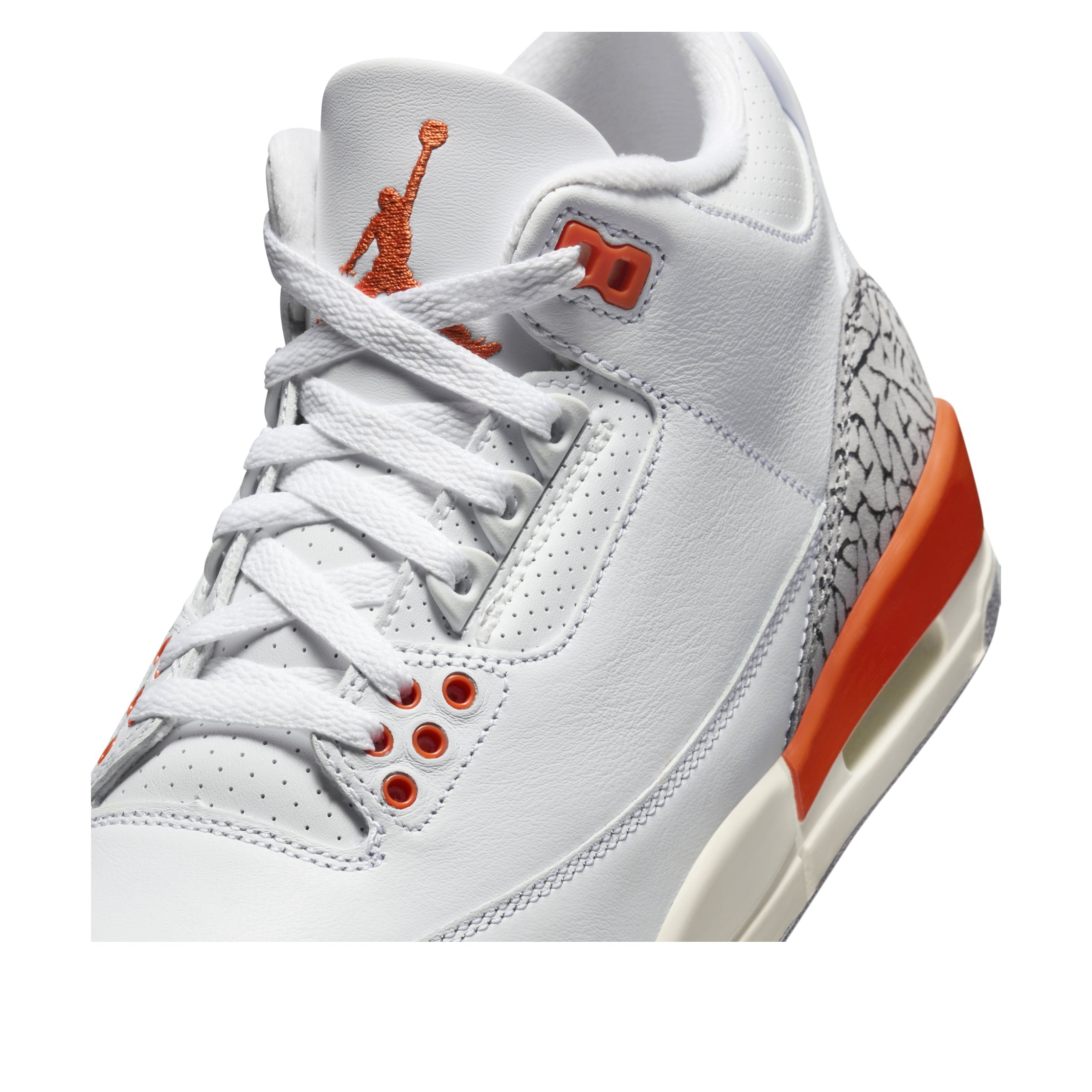 The Jordan 3 Retro Georgia Peach (Women s) is a high-top basketball shoe that takes its color inspiration from the colorful fruit. This version of the Jordan 3 Retro is made with a paneled and textured white leather upper. A white overlay provides support around the bottom, while further overlays in a black and gray elephant skin pattern round out the toebox and the heel. Cosmic Clay orange is prevalent on some of the eyestays, while the Air Jordan Jumpman logo appears on both the heel and the tongue in Cosmic Clay. The same color rounds out the heel above a visible Air unit. A white and gray rubber outsole completes the shoe s look.Our favorite thing about this shoe is the Cosmic Clay orange accents, which give the otherwise simple shoe a pop of color. The Jordan 3 Retro Georgia Peach (Women s) was released on April 23, 2024, for a price of $200.