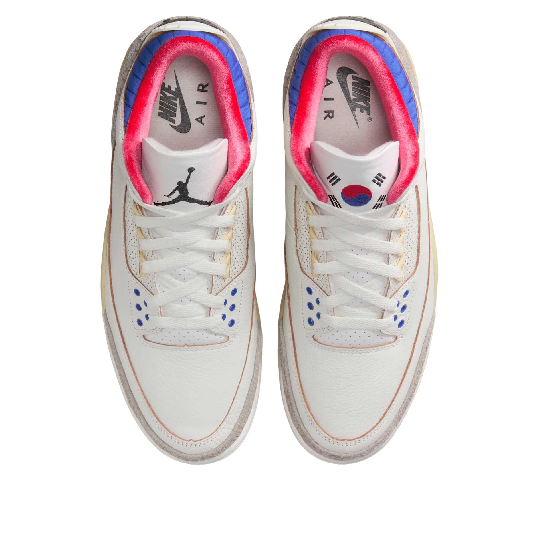 The Jordan 3 Retro Seoul 2.0 blends basketball heritage with Korean pride in one unforgettable silhouette. A sequel to the ultra-limited 2018 edition, this pair pays homage to South Korea s cultural iconography and the 1988 Seoul Summer Olympics. It returns with a crisp white leather upper, suede elephant print panels, and bold accents of sport royal and challenge red inspired by the Taegukgi flag. Jordan Brand added subtle upgrades to set the 2.0 version apart: quilted blue collars, aged yellow midsoles, and the reversal of the original embroidery across the tongues. These thoughtful tweaks make the sneaker feel both fresh and reverent to its roots. It s a refined evolution of a beloved design that merges MJ s legacy with Korean flair. The Jordan 3 Retro Seoul 2.0 was released on May 15, 2025, for a retail price of $200. Done in white, black, sport royal, challenge red, pale vanilla, and college grey, it captures the spirit of Seoul and the DNA of an all-time classic.