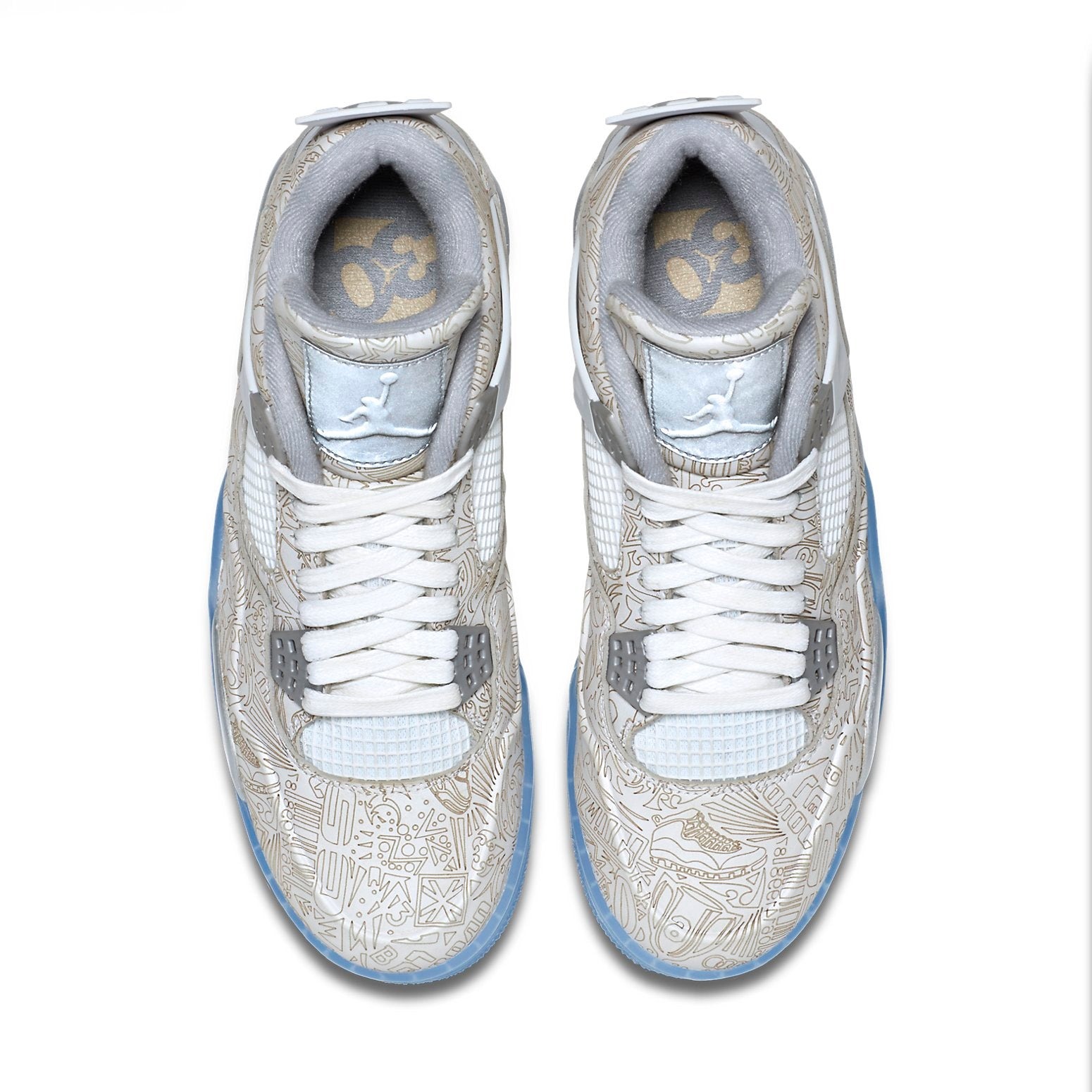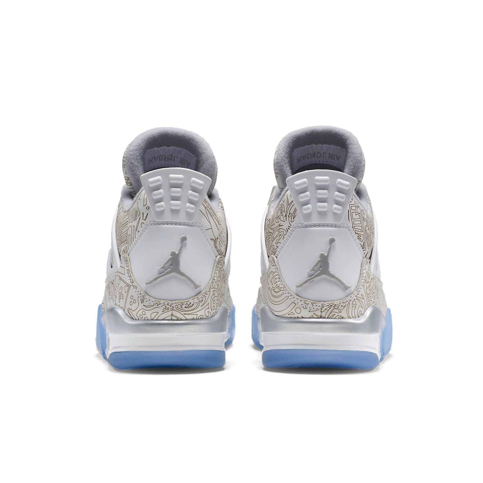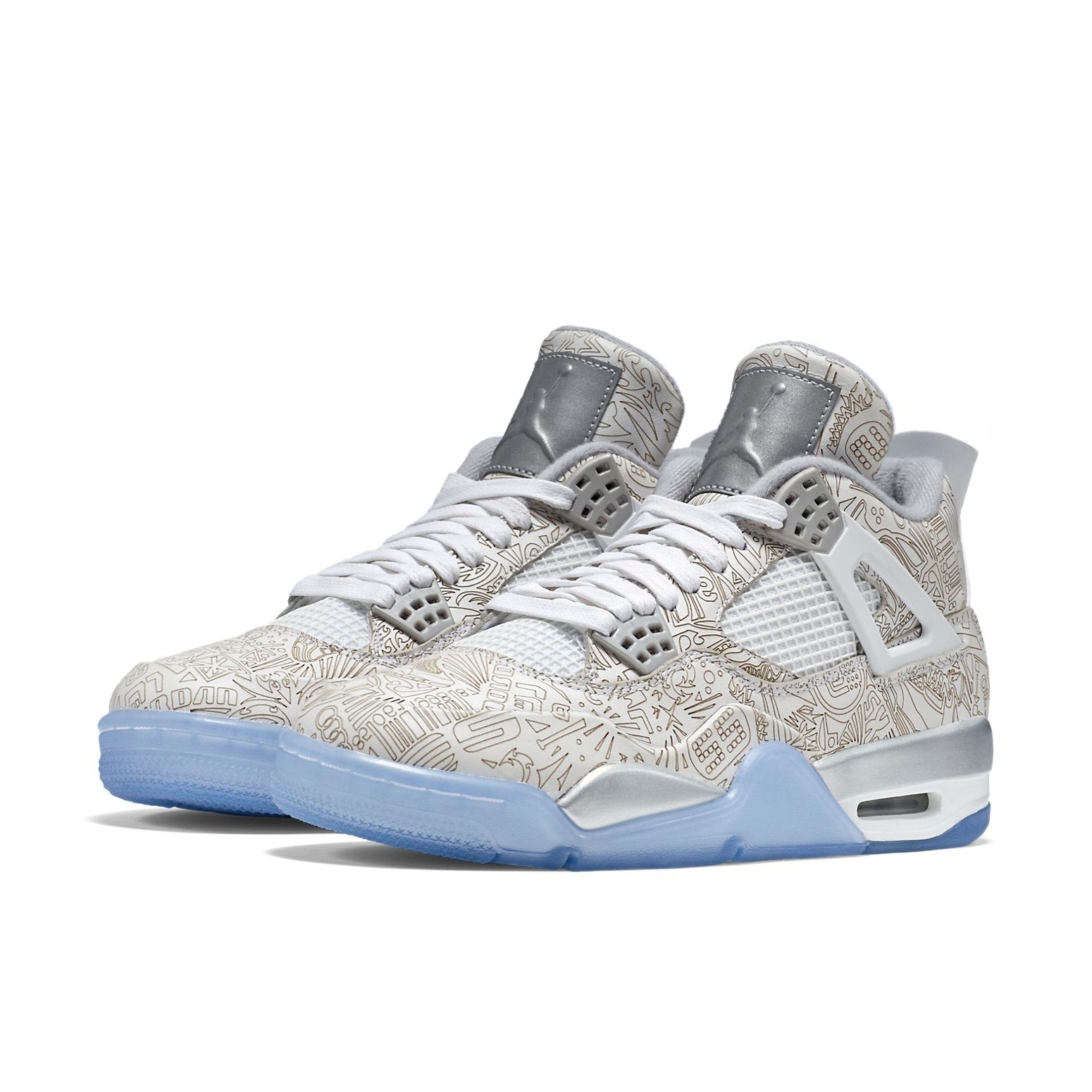 The Air Jordan 4 Retro 30 Anniversary Laser was included as a 30th Anniversary edition in the brand s Jordan catalog.This shoe features a clean white and metallic silver laser print throughout the upper in a graffiti print design. It also includes a round toe, lace-up fastening, and a flat sole. The trademark Jumpman logo is visible on the heel in chrome-metallic silver. 3M reflective details on the “Flight” logo patch on the tongue tags and a translucent icy outsole complete the sneaker. The Air Jordan 4 Retro 30 Anniversary Laser was released on 13th February 2015, retailing at $250.