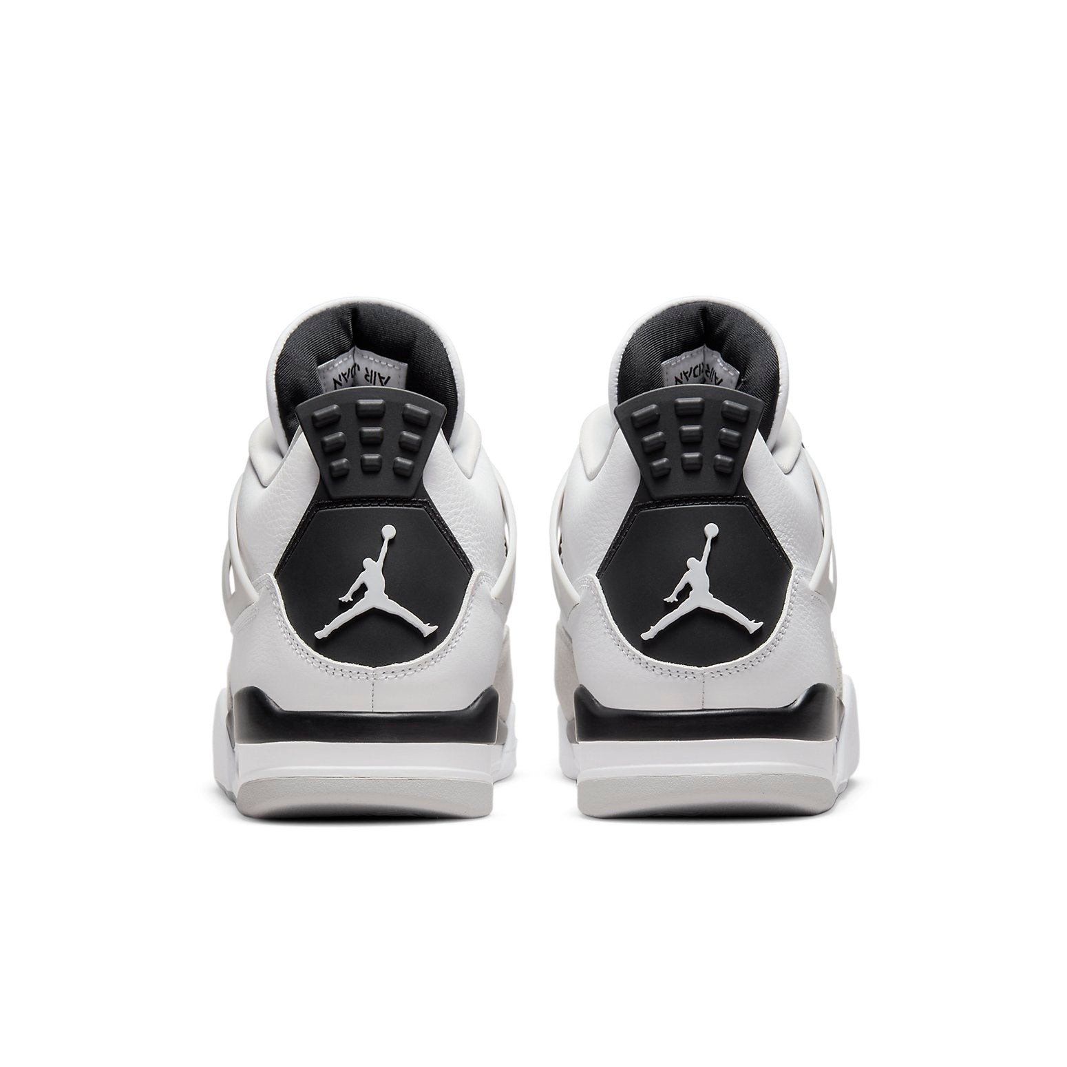 Jordan Brand flipped one of its original Air Jordan 4 colorways for the Air Jordan 4 Military Black.Pulling its color-blocked style from the Air Jordan 4 Military Blue, the Air Jordan 4 Military Black features a smooth white leather upper with a light grey Durabuck toe wrap and netted TPU inserts. Military Black eyelets, heel tabs, and underlays add a stark contrast to the upper. At the base, a white, black, and light grey sole with a visible Air unit completes the design.The Air Jordan 4 Military Black released in May of 2022 and retailed for $210.