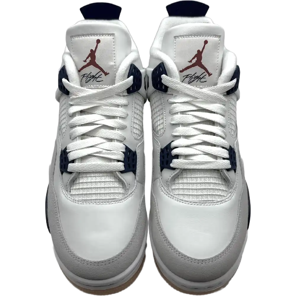 The Jordan 4 Retro SB Navy features a Summit White/White/Navy/Neutral Grey/Gum Yellow/Varsity Red colorway. This Jordan 4 Retro SB was first released for $225 on March 18, 2025.