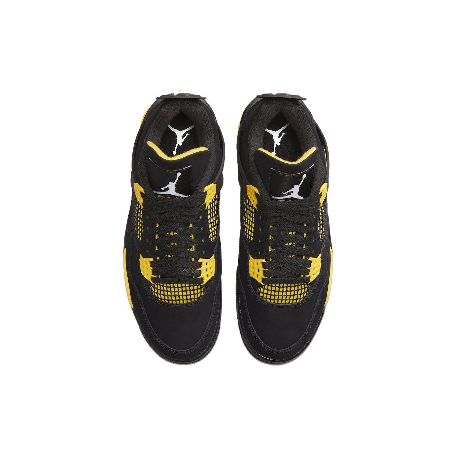 For the first time in over a decade, the Air Jordan 4 Retro Thunder is returning and is being featured as part of the Jordan Brand Spring/Summer 2023 campaign. Jordan Brand brought back this fan favorite colorway that is constructed using premium black nubuck uppers with splashes of Tour Yellow throughout the midsole, lace eyelets, and tongue. Michael Jordan’s iconic Jumpman logo is placed on the heel tab, tongue and insoles of the sneakers. The Air Jordan 4 Retro Thunder (2023) released May 13, 2023, with a retail price of $210.