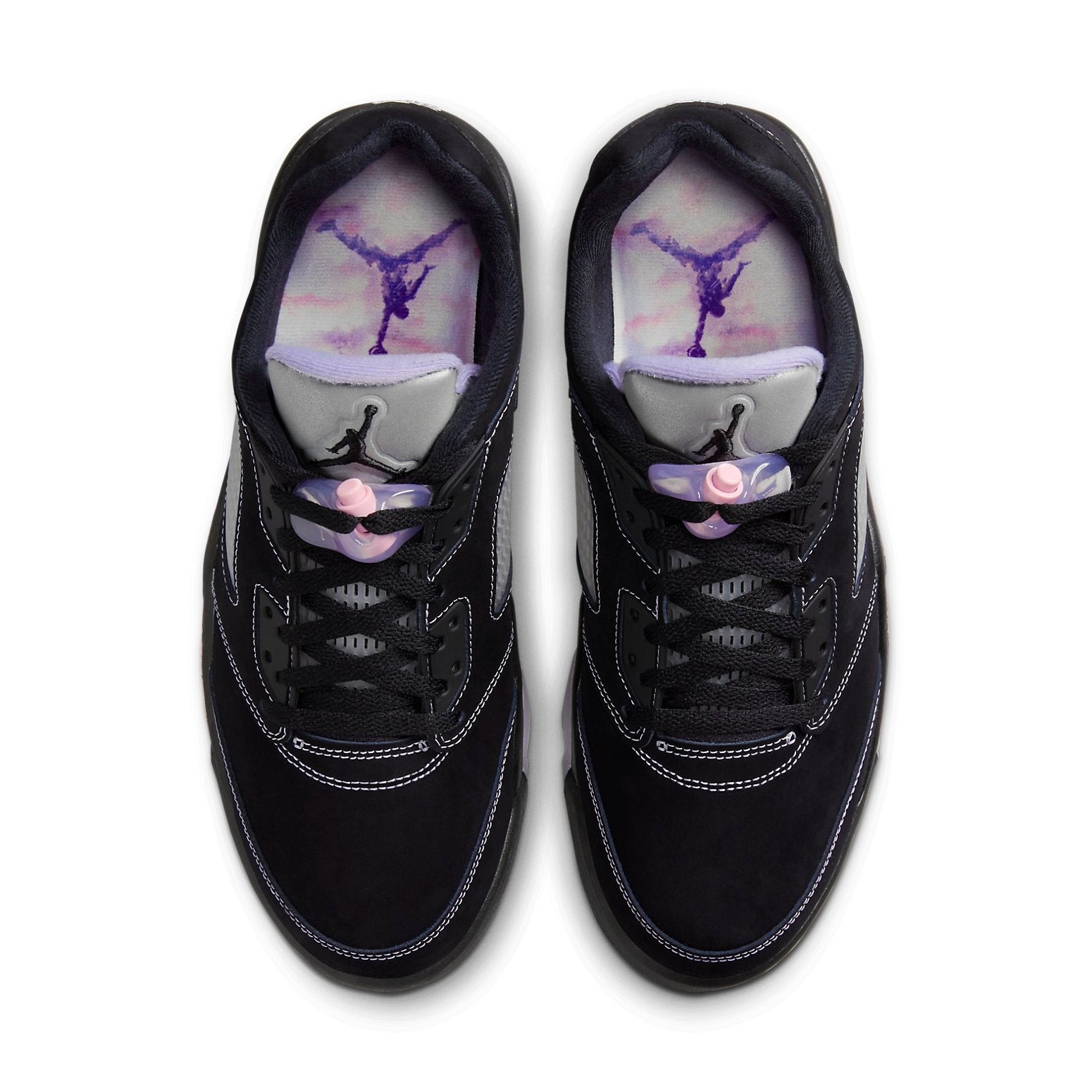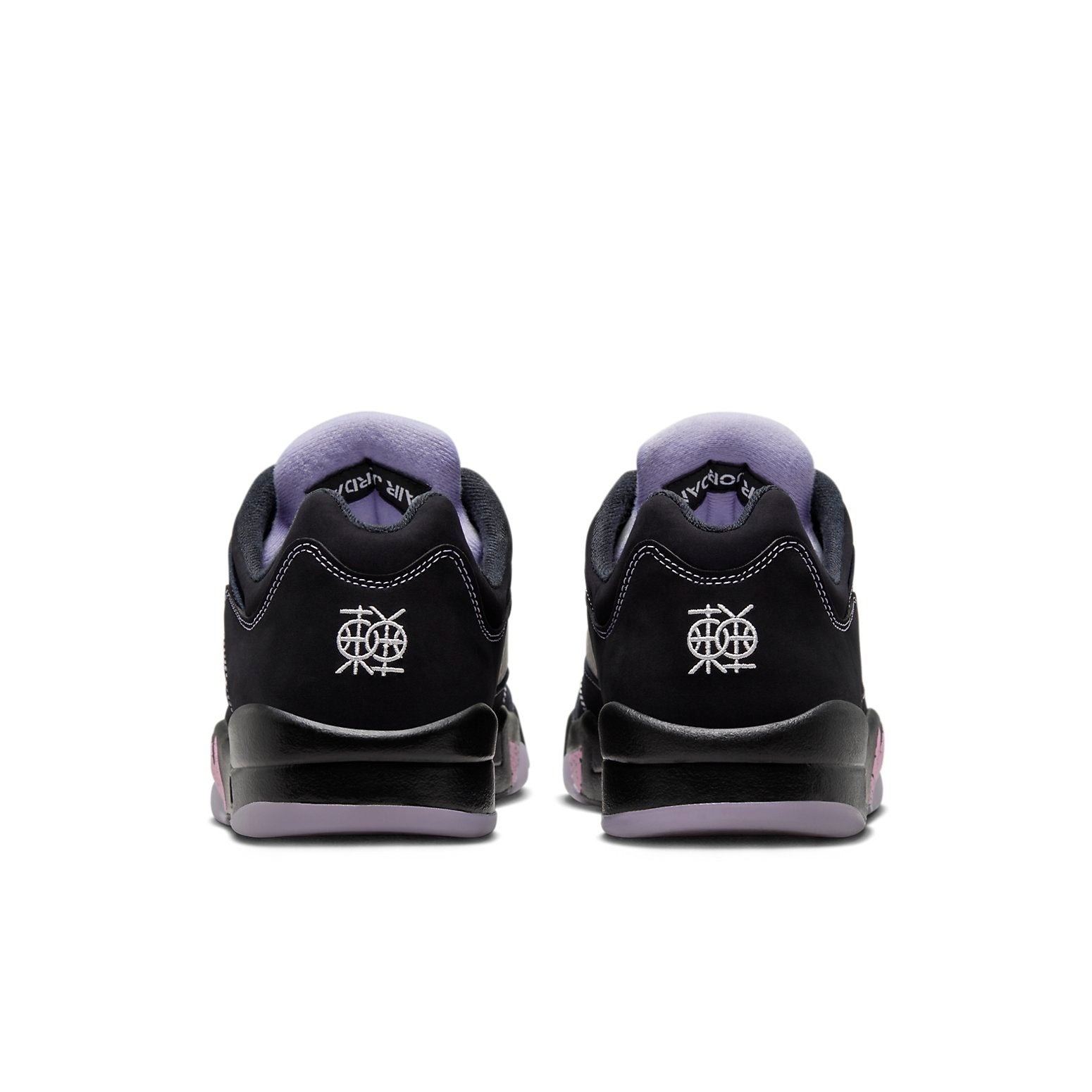 The Jordan 5 Retro Low Dongdan draws its inspiration from the annual Chinese streetball tournament held in Beijing, China, known as Dongdan.The Dongdan Air Jordan 5 Retro low-top sneaker features a black nubuck upper with contrasting pink stitching and translucent netting on the quarter panel. The tongue boasts a reflective silver Jumpman icon, and the back heel is embroidered with the Dongdan tournament’s logo. Resting on a black polyurethane midsole, it includes visible Air cushioning and distinctive pink shark-tooth detailing with black speckles. The outsole is constructed from translucent rubber with a pink tint, providing traction on various surfaces.What our experts love about the Jordan 5 Retro Low Dongdan is its classic Jordan 5 low silhouette design. This sneaker showcases the iconic shark teeth-like detailing on the midsole and the distinctive lateral side window, both of which are hallmarks of the Jordan 5 design. The sneaker debuted for $190 retail on August 3rd, 2023.