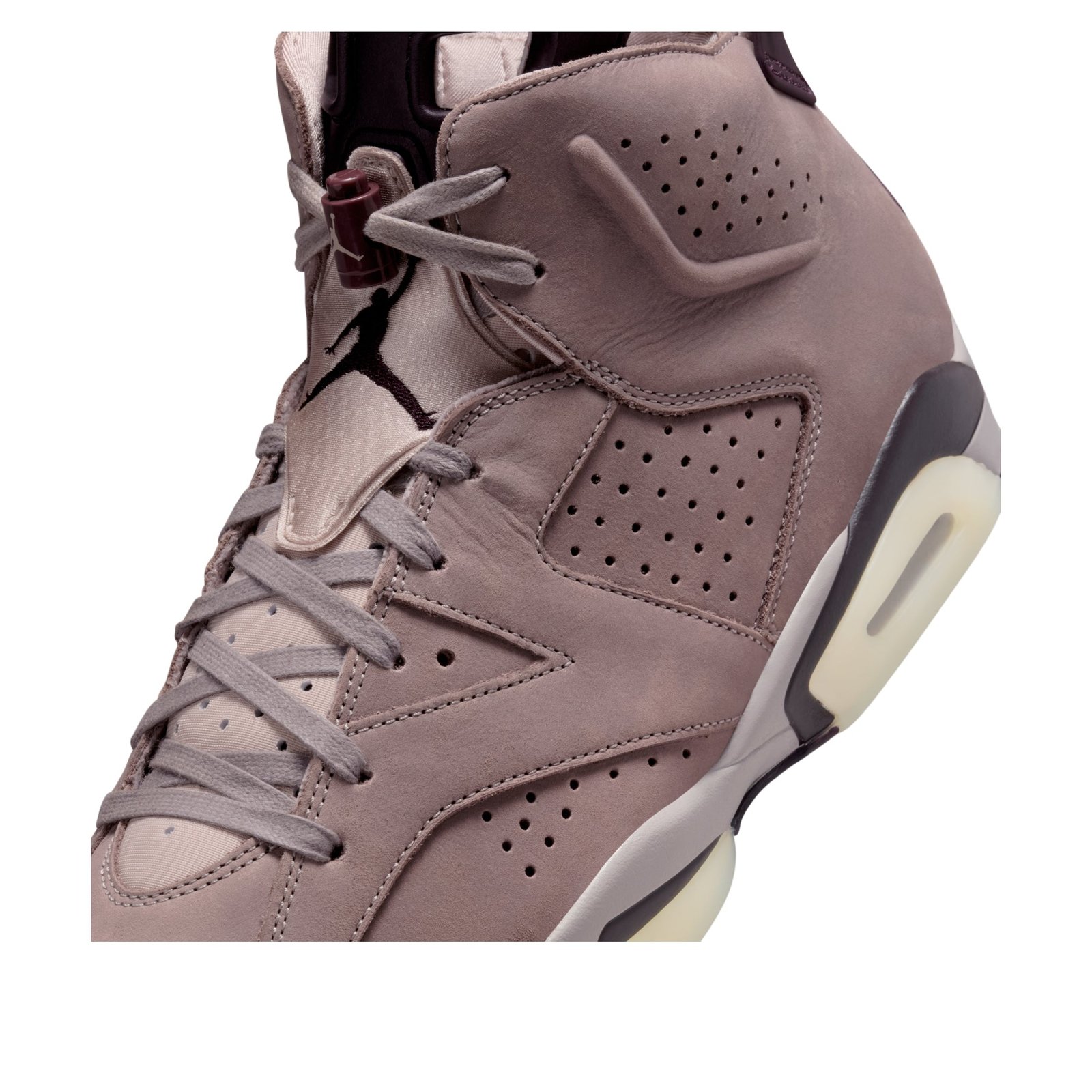 The Air Jordan 6 Retro A Ma Maniere Smokey Mauve continues A Ma Manieres tradition of elevating Jordan silhouettes through emotion, texture, and restraint. The smokey mauve colorway gives the Jordan 6 a soft yet powerful presence, shifting the silhouette away from aggression and toward refinement. It feels thoughtful and expressive, designed to be appreciated through detail rather than instant impact. Collectors are drawn to this release because it reflects intention and care. The Jordan 6s structure remains strong, but the muted palette and premium feel create a more introspective mood. Fans love how A Ma Maniere consistently brings storytelling and elegance to Jordan collaborations, turning iconic models into meaningful expressions of culture, identity, and modern luxury. The Air Jordan 6 Retro A Ma Maniere Smokey Mauve was released on December 6, 2025 with a retail price of $230.