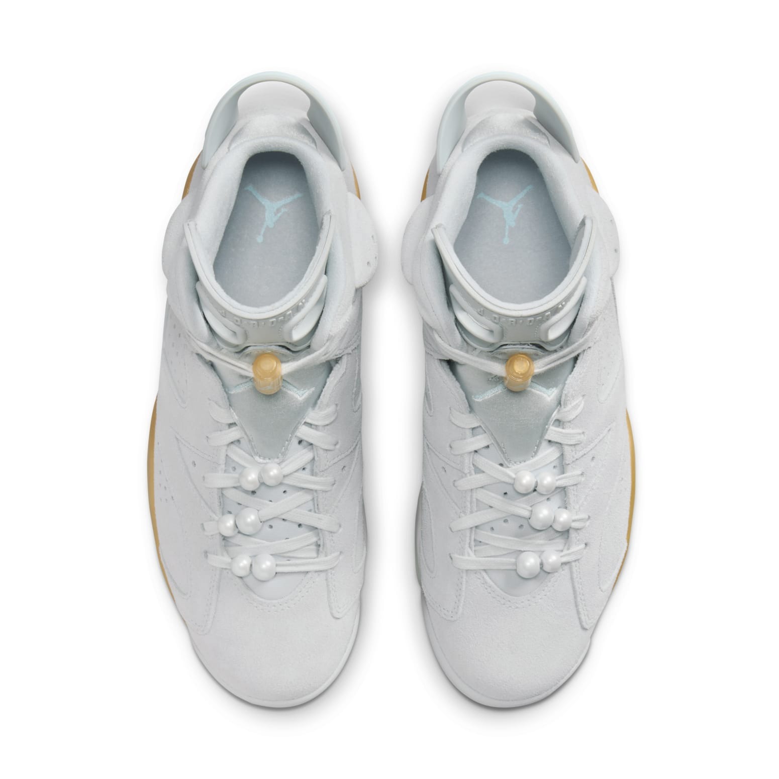 Crafted with premium materials, the Jordan 6 Retro Craft combines luxurious aesthetics with top-notch craftsmanship. The upper is made of suede, providing durability and a modern finish. The metallic gold accents add a touch of glamour, while the glacier blue details offer a subtle contrast, enhancing the overall look.