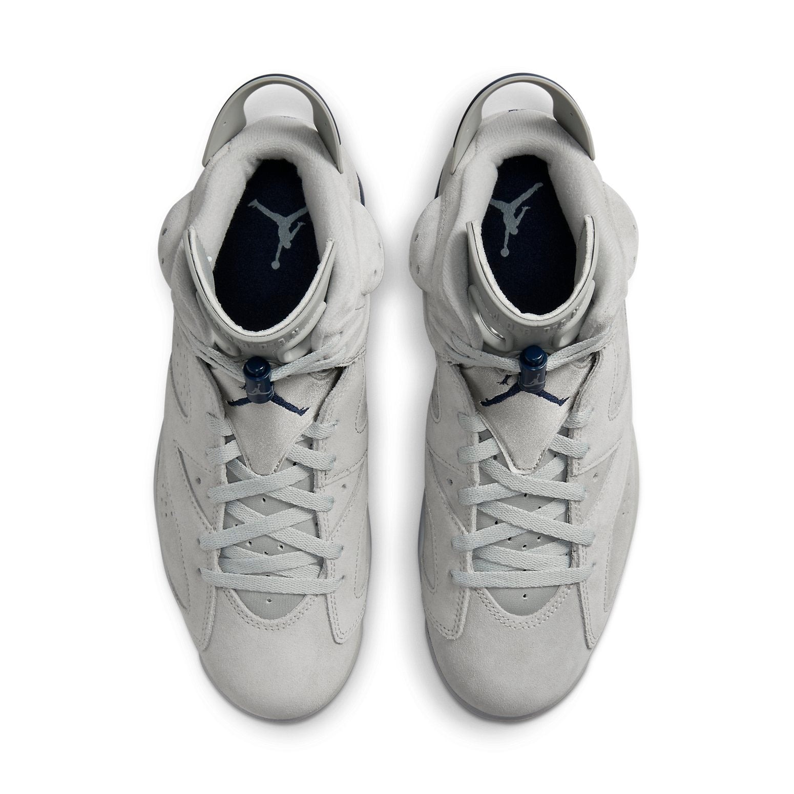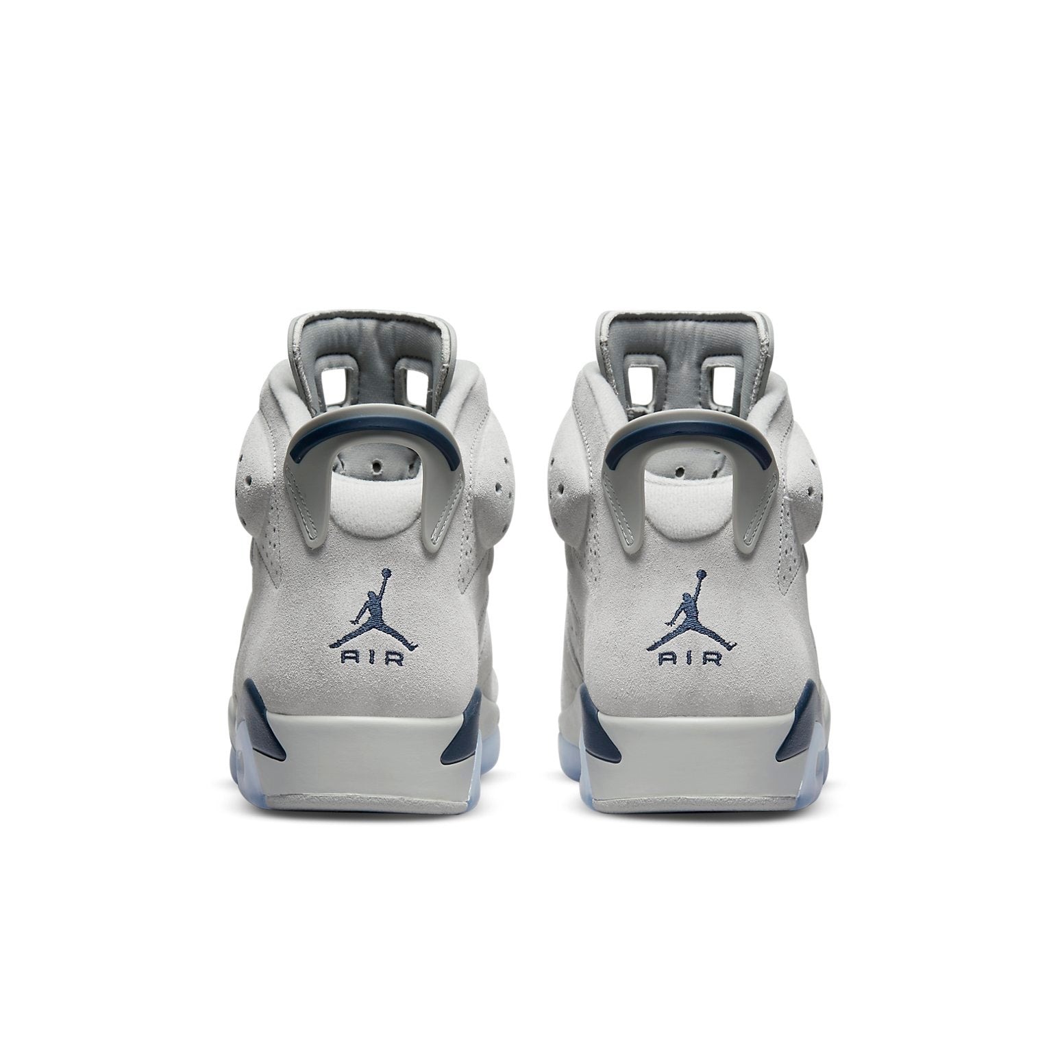 The Air Jordan 6 Retro Georgetown 2022 was made available in the signature colors of the Hoyas team.This Retro Air Jordan 6 legacy silhouette makes use of a gray suede upper with perforated detailing and a Huarache-like inner sleeve. Contrasting navy accents make their way to the heel tab, lace locks, and Jumpman branding hits embroidered on the tongue and back heel. The sneaker rests on a two-tone polyurethane midsole, featuring a visible Air-sole unit in the heel and a translucent rubber outsole underfoot.The Air Jordan 6 Retro Georgetown 2022 was released on the 3rd of September 2022 for an original price of $200.