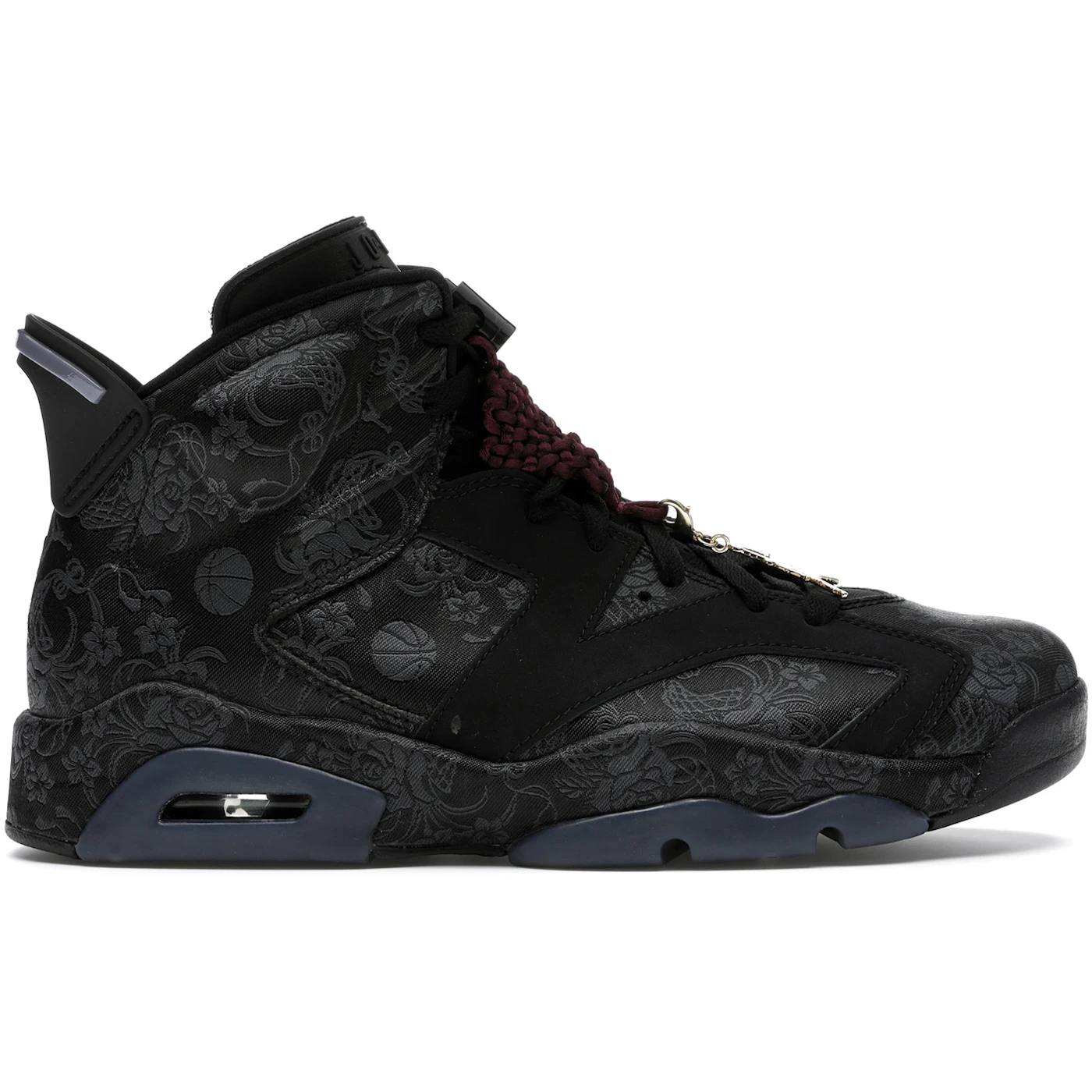 The Air Jordan 6 Retro SD Triple Black (W) was launched as part of the women s sports collection of the Jordan brand.The Air Jordan 6 Retro SD Triple Black (W) features a black colorway and floral design decorated at the upper part, black laces with beet red ropes tied at the clump of the tongue, and a golden Jumpman at the upper toe box of the shoe. The sneaker is from leather, rubber, and suede materials that complete its texture.The Air Jordan 6 Retro SD Triple Black (W) became available on November 25, 2020 at a retail price of $210.