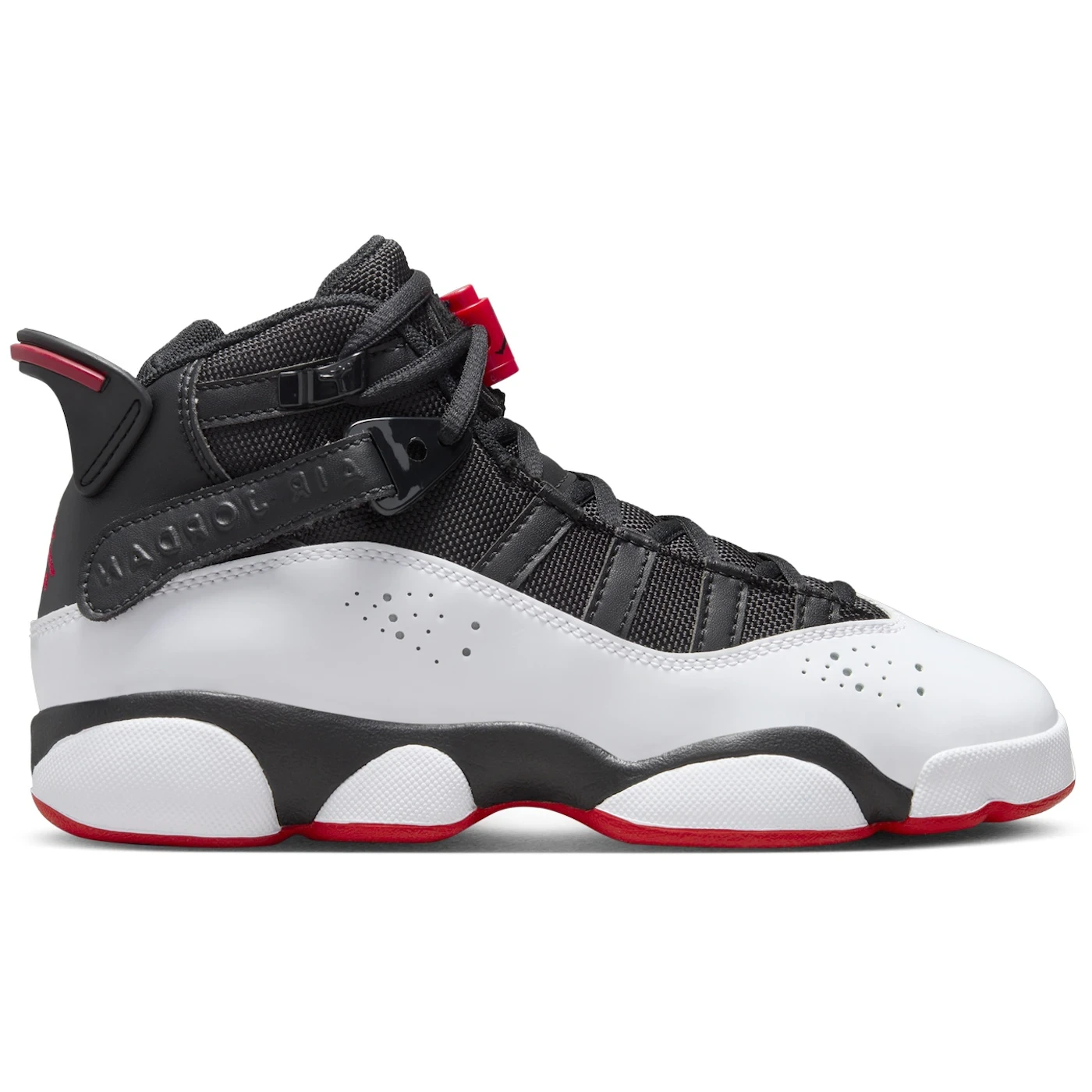 The Jordan 6 Rings Black White University Red (GS) features a Black/White/University Red colorway. This Jordan 6 Rings was first released for $135 on December 12, 2023.