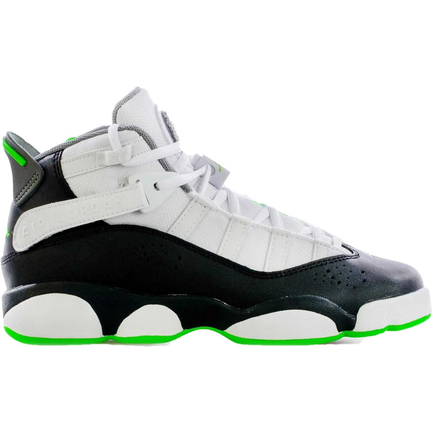 The Jordan 6 Rings White Black Green (GS) features a White/Green/Black/Grey colorway. This Jordan 6 Rings was first released for $130.