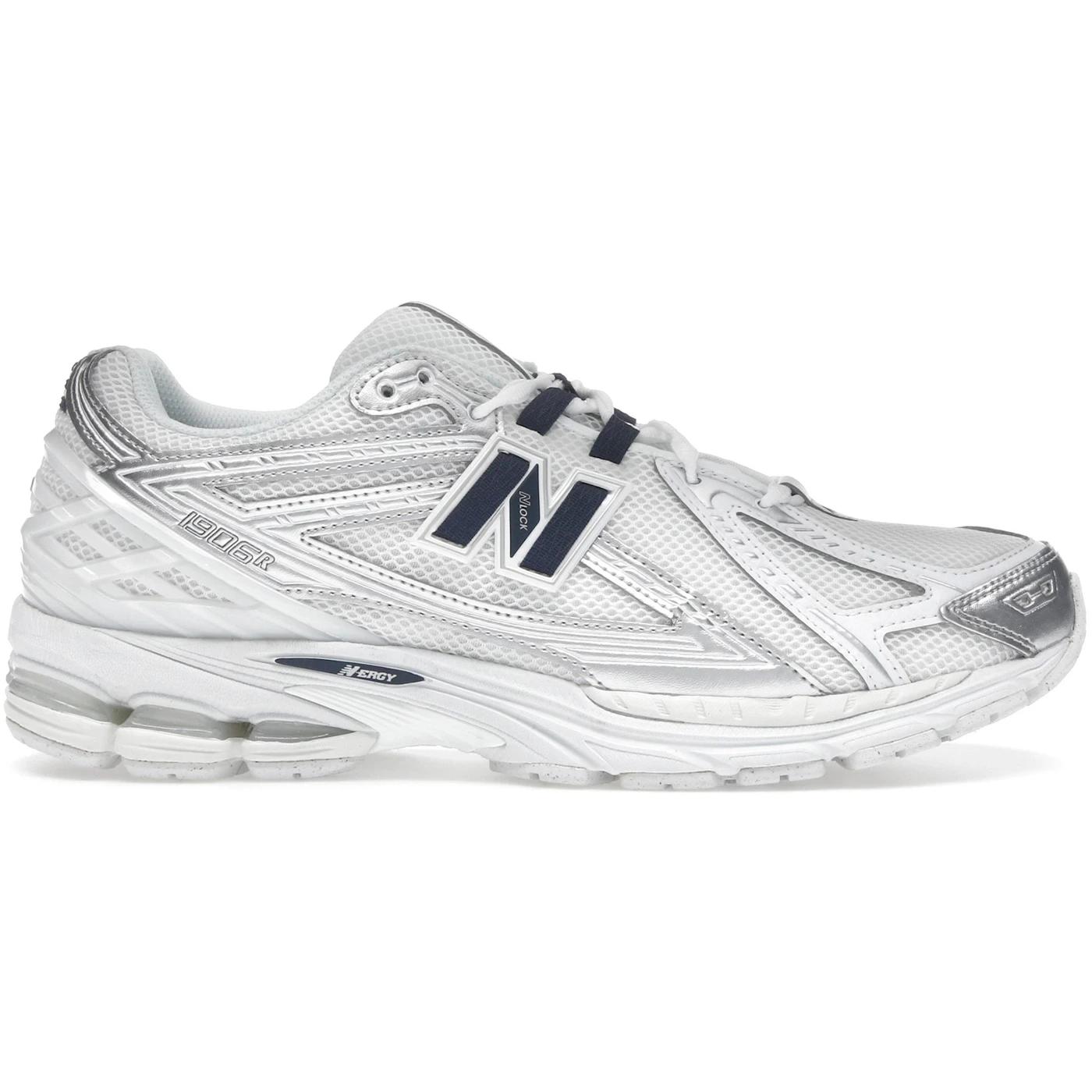 The New Balance 1906R White Navy Silver Metallic features a White/NB Navy/Silver Metallic colorway. This New Balance 1906R was first released for $155.