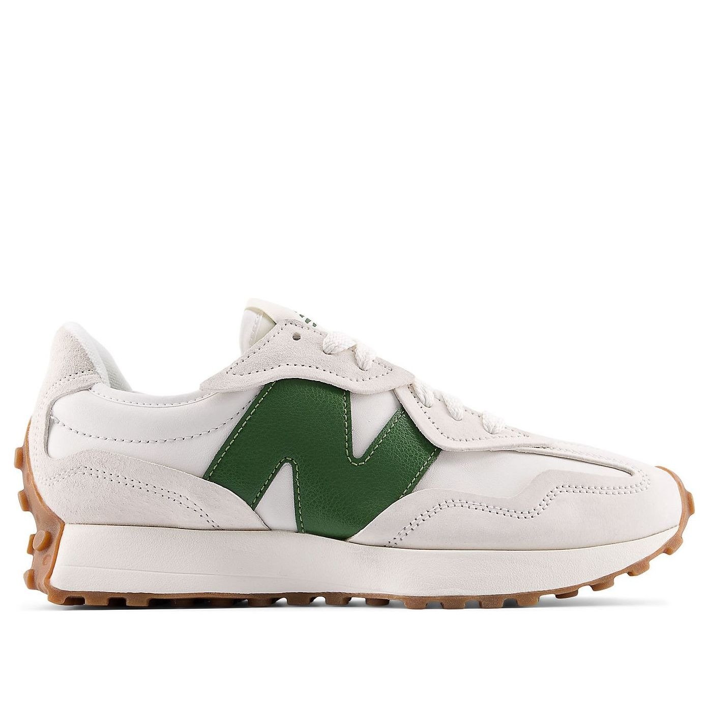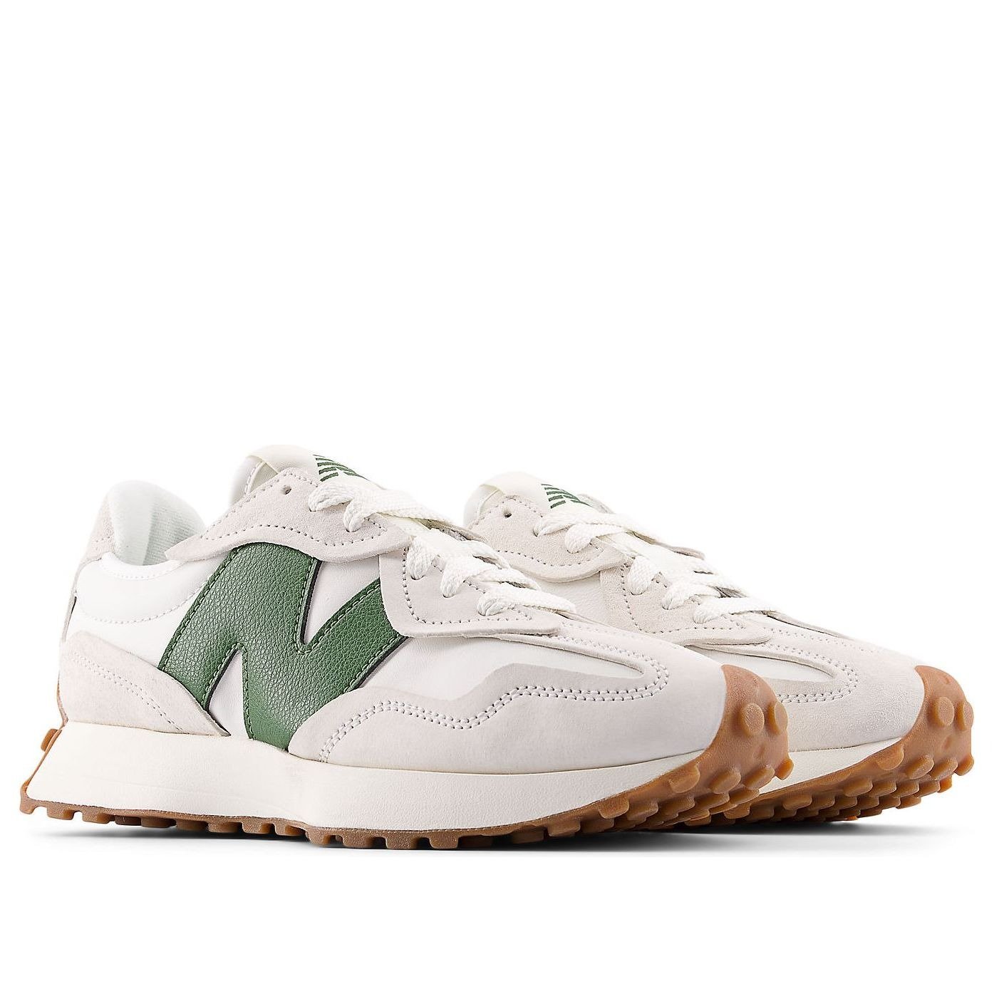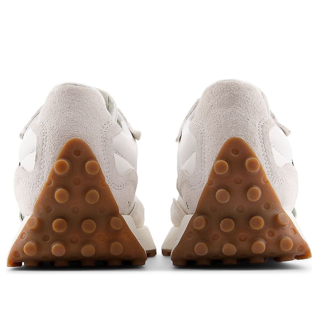 The New Balance 327 Linen Dark Alpine Green Gum features a Linen/Dark Alpine Green colorway. This New Balance 327 was first released for $100.
