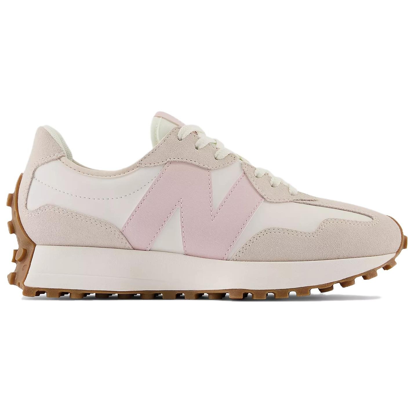 The New Balance 327 Moonbeam Stone Pink (Women’s) is an athletic shoe in women’s sizes. It features a white fabric upper with Moonbeam suede overlays, accented by an enlarged “N” logo in Stone Pink on the sides. Additional New Balance branding appears on the tongue and inner heel. A gum rubber lug outsole and heel wrap accent a white outsole.New Balance, the American sportswear brand, dates back to 1906. It is known for its history in the development of running shoes, which boomed in the 1970s. The 327 reflects New Balance’s running shoe heritage with its vintage silhouette, while modern design elements like the oversized “N” logo and wrapped heel provide modern lifestyle updates.Our experts feel that the 327 Moonbeam Stone Pink’s best feature is its soft color story, which makes it a versatile neutral for the streets or the track. The New Balance 327 Moonbeam Stone Pink (Women’s) was released on February 13, 2023, and retailed for $120.
