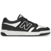 The New Balance 480 Black White is a heritage basketball court shoe, featuring a clean, essential color blocking. The shoe features White and Black. The low-top silhouette is constructed from durable leather, maintaining the structured paneling and robust profile of its 1980s court origins. The cushioned sole unit ensures comfort for daily wear. This versatile staple was released on November 13, 2022, with an accessible retail price of $90. The crisp White leather base is sharply contrasted by the Black detailing on the N logo, heel, and outsole. This two-tone execution makes the 480 an easy-to-wear, timeless model valued for its durability and classic aesthetic. Our team appreciates the clean, sharp contrast of the White leather and Black detailing, defining the durable structure of this heritage low-top court shoe.