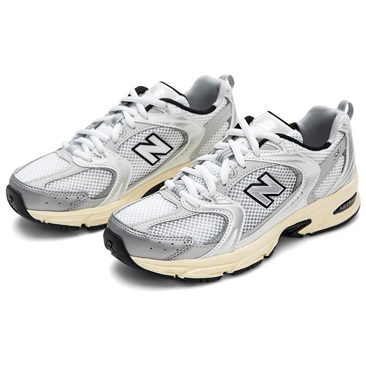 The New Balance 530 Silver Cream was released in celebration of the brand s 30th anniversary.This model has a cream-toned mesh base with silver and grey synthetic overlays. The “N” logos on the shoe quarters also comes in a silver hue with a black outline. Further branding includes the “NB” text on its padded tongue, also in a silver tone, and a 530 text on the shoe collar. The base is equipped with an ABZORB midsole that provides light cushioning, and completes its design. The New Balance 530 Silver Cream was released on the market on January 7th, 2023. It retailed at a price of $100.
