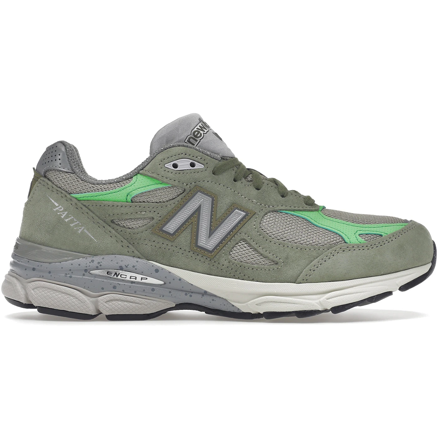 The New Balance 990v3 Patta Keep Your Family Close arrives in an olive and bright green color palette.The New Balance 990v3 Patta Keep Your Family Close features an upper that is constructed from suede and mesh for breathability. The shoe’s midsole features New Balance’s trademark ENCAP technology for cushioning. The outsole is constructed using a tough rubber mixture for durability. On the sides of the shoe, you can find the “N” logo, while the tongue displays the inscription “new balance USA.” Additionally, the heel of the sneaker showcases the lettering “USA P” and the brand name “new balance.”The New Balance 990v3 Patta Keep Your Family Close was released on September 30, 2022, and retailed for $220.