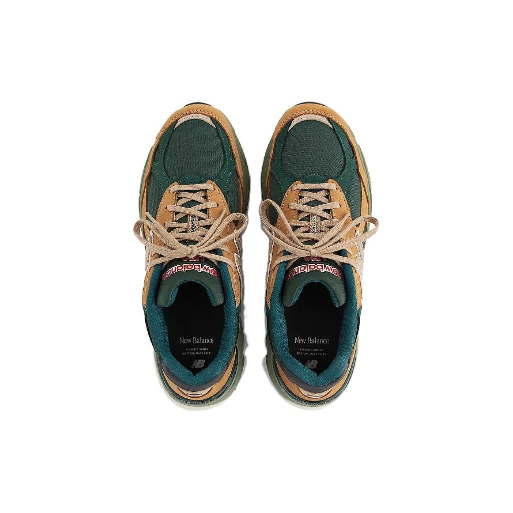 The New Balance 990v3MiUSA Tan Green is an upper running shoe. It is made of a combination of premium leather and mesh materials. Because of its many features, you can comfortably wear these shoes on short or long runs. These attributes include foam in the midsole, a rubber outsole for traction, and a heel counter for better foot stability and ankle support. Its color scheme is tan and forest green. The branding is in a few places on this shoe. It is on the heel of the shoe, and the trademark logo is on the shoe’s sidewall. Also, the NB label is on the exterior of the tongue. The shoe sports a toe cap and semi-chunky sole colored in three tones. The 990 collection symbol is on the rear side panel of the New Balance 990v3MiUSA Tan Green. Our team is most impressed that this shoe brand/collection is manufactured in the USA. New Balance released this shoe on January 26, 2023. It originally retailed for $200.
