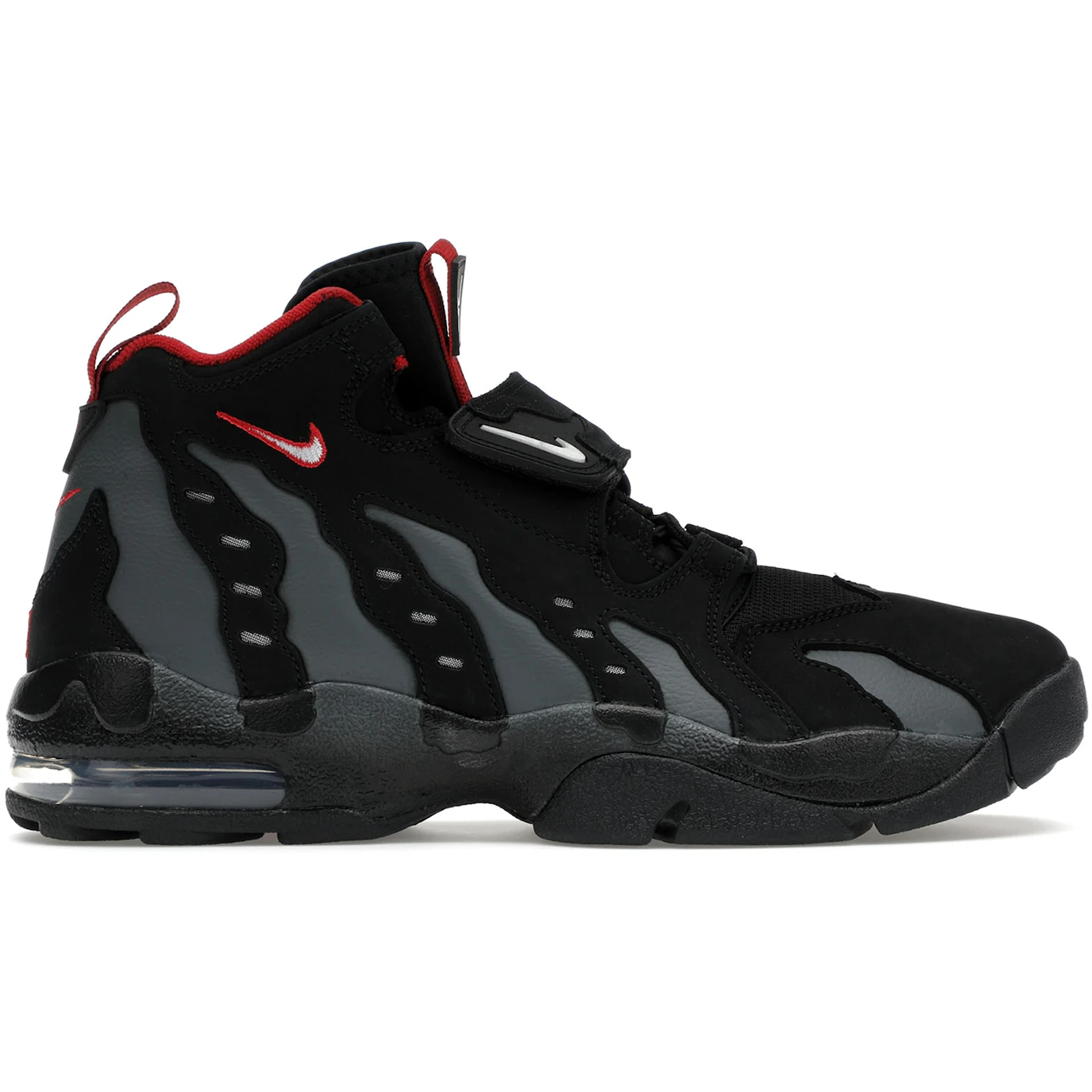 The Nike Air DT Max 96 Falcons is a premium sneaker that pays homage to coach and former NFL player Deion Sanderss early career with the Atlanta Falcons. The Falcons Nike Air DT Max 96 upper is crafted from ultra-soft, black nubuck with accents in Team Anthracite, Fire Red, and white. This color scheme represents the Falcons team colors and celebrates one of Georgias top NFL teams. Embroidered in Fire Red and white thread, “21” appears on the heel a nod to Sanderss Falcons jersey number. Other Fire Red details include the collar lining, the heel pull tabs, the miniature Swoosh logos near the ankle, and the tongue pull tab. In terms of technology, visible Air Max cushioning provides comfort underfoot. Our experts at Newsole like that this sneaker is the first DT Max to display Sanderss jersey number. The Nike Air DT Max 96 Falcons was released on November 15, 2024, and sold for $170.