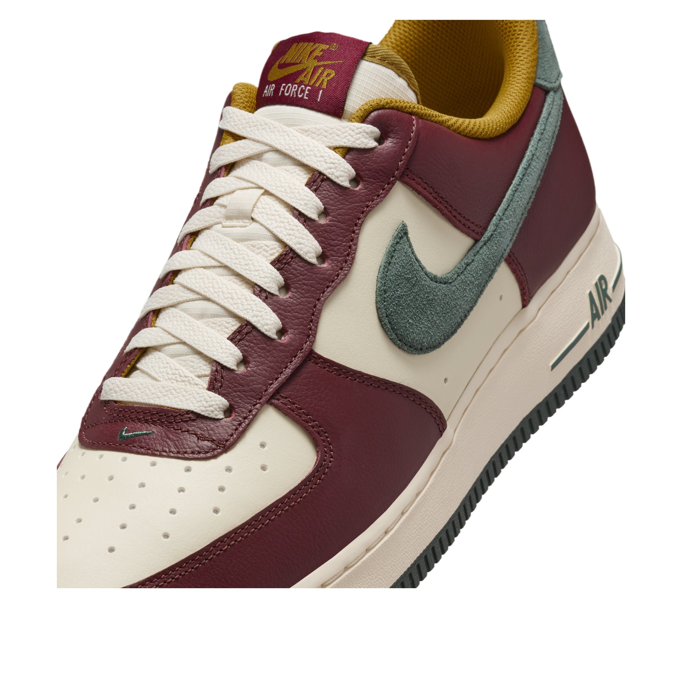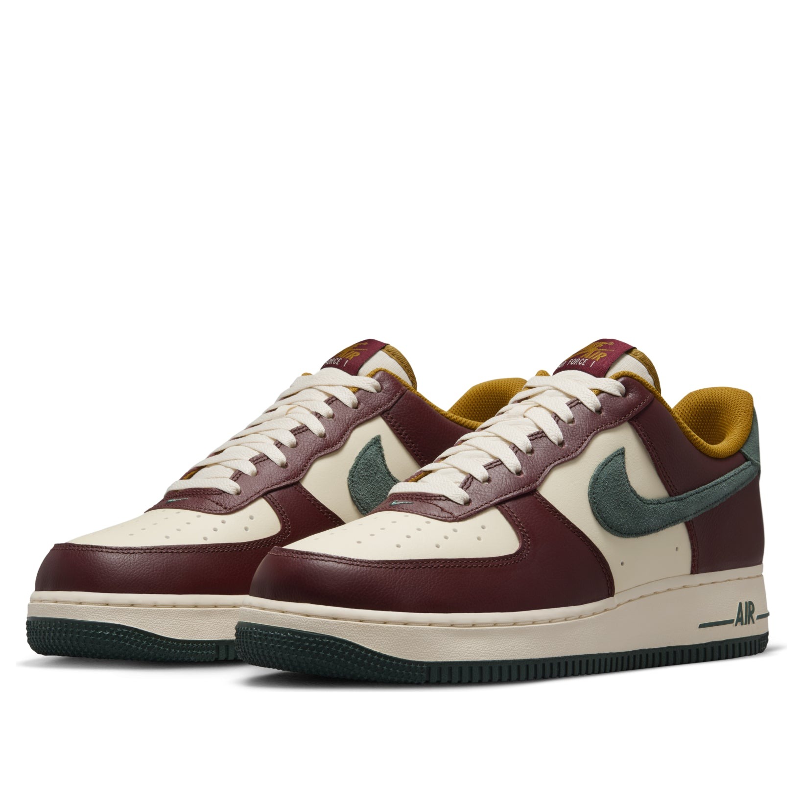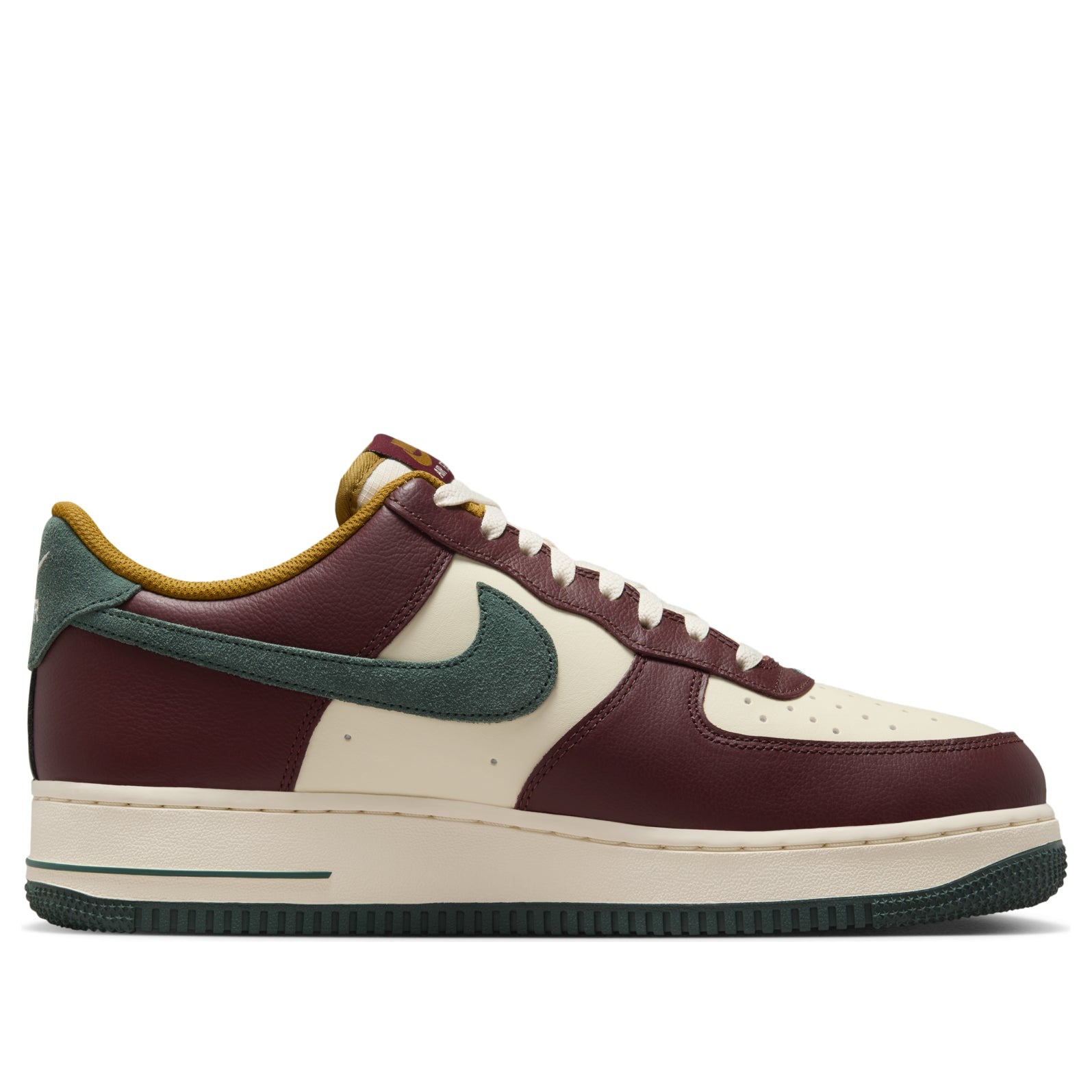 The Nike Air Force 1 Low ’07 LV8 Dark Team Red Vintage Green brings a fresh twist to the iconic silhouette. This men’s sneaker features a premium leather upper in a sophisticated Coconut Milk colorway, accented with Dark Team Red, Bronzine, and Vintage Green details. The classic low-top design is enhanced with LV8 (elevated) styling, offering a subtle height boost and added comfort. Combining timeless appeal with modern aesthetics, this Air Force 1 variant showcases Nike’s commitment to innovation while honoring its heritage. The shoe’s color palette exudes a vintage charm, perfect for those seeking a versatile yet distinctive footwear option. With its durable construction and iconic Air-Sole unit, it delivers the comfort and style that have made the Air Force 1 a staple in sneaker culture. Us at Newsole believe this product is great for those who appreciate classic design with a contemporary edge, suitable for both casual wear and making a subtle fashion statement.