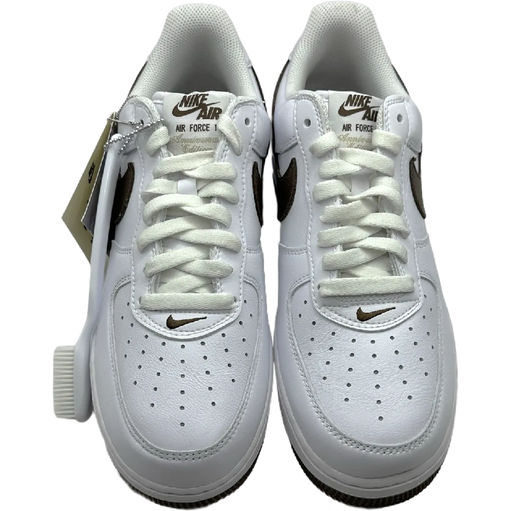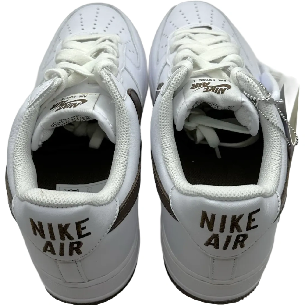 The Nike Air Force 1 Low Chocolate is a sophisticated shoe that fuses traditional style with contemporary materials. Premium leather makes up the top, while Nike’s recognizable Air cushioning is found in the midsole for optimal comfort and support. The famous Air Force 1 gets a modern makeover in the white and chocolate hue, making it a useful addition to any sneaker collection.