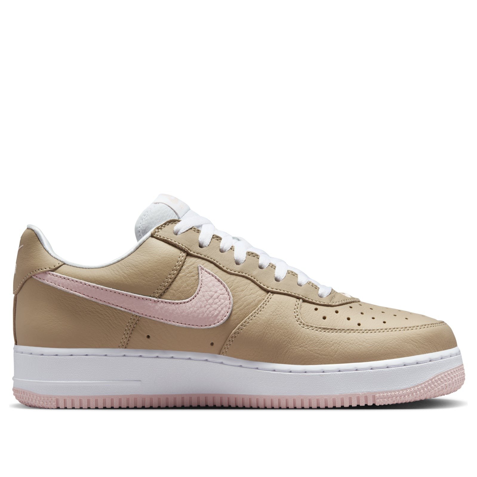 The Nike Air Force 1 Low Linen is a special edition sneaker that was released exclusively for the Japan market back in 2001 and then re-released in 2016 to celebrate the opening of Kith’s Miami store. They were re-released on a wider scale in 2024.The shoe features a light brown (linen) colorway with atmosphere pink and true white accents. Atmosphere pink is seen on the Swoosh and outsole while true white appears on the laces and midsole. The shoe maintains the Air Force 1 signature design with the stitching around the midsole and placement of panels on the upper and sides.What we love about the Nike Air Force 1 Low Linen (2016/2024) is the thick sole unit which incorporates Air units to deliver responsive cushioning across the whole underfoot. This helps to improve comfort especially when wearing the shoes for an extended period. The shoes were released for a retail price of $120 on December 1st, 2016. The Nike Air Force 1 Low Linen (2016/2024) was re-released for a retail price of $135 on June 13th, 2024.
