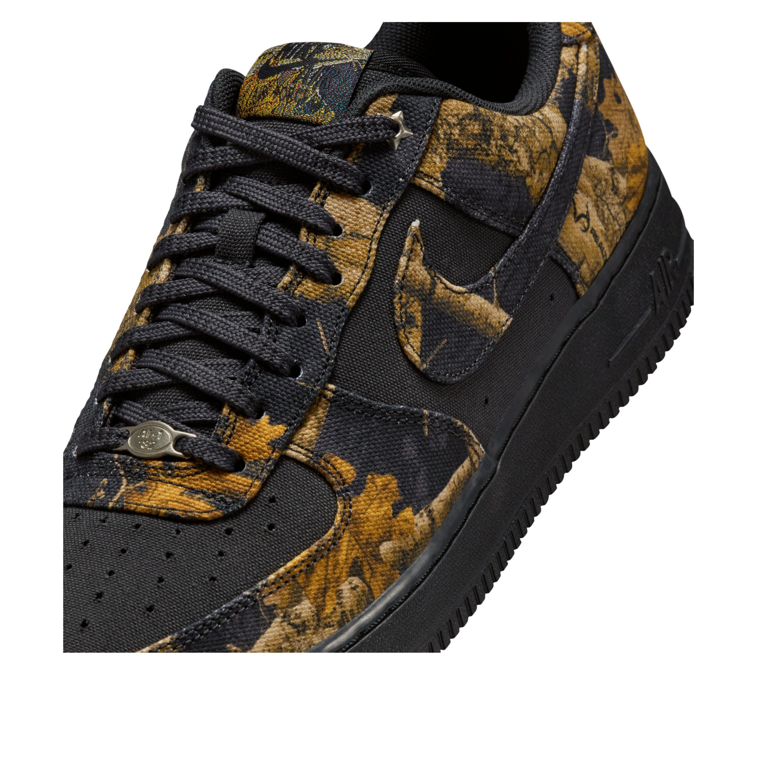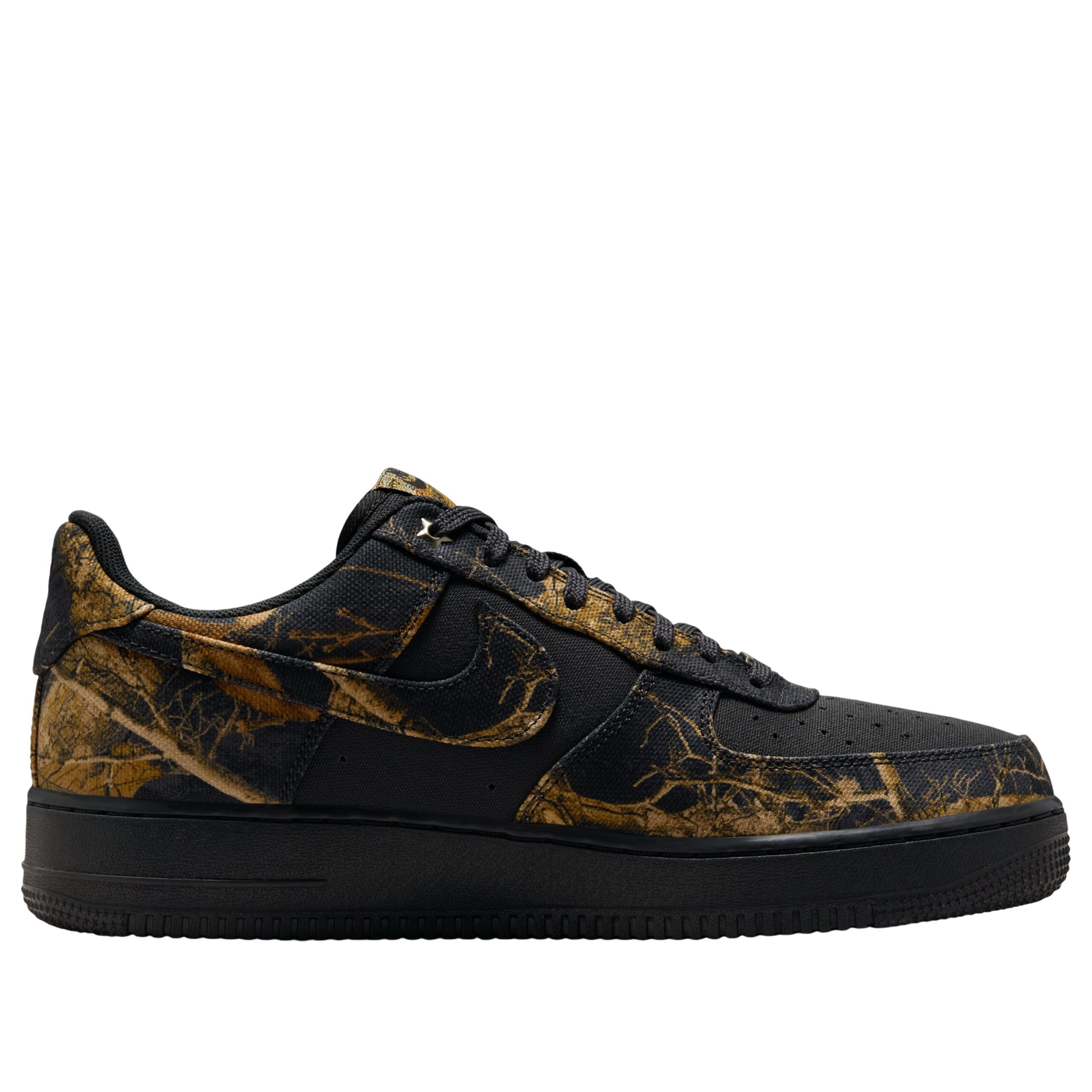The Nike Air Force 1 Low Realtree Black Camo features a Off Noir/Multi-Color/Gum Yellow colorway. This Nike Air Force 1 Low was first released for $125 on October 03, 2025.