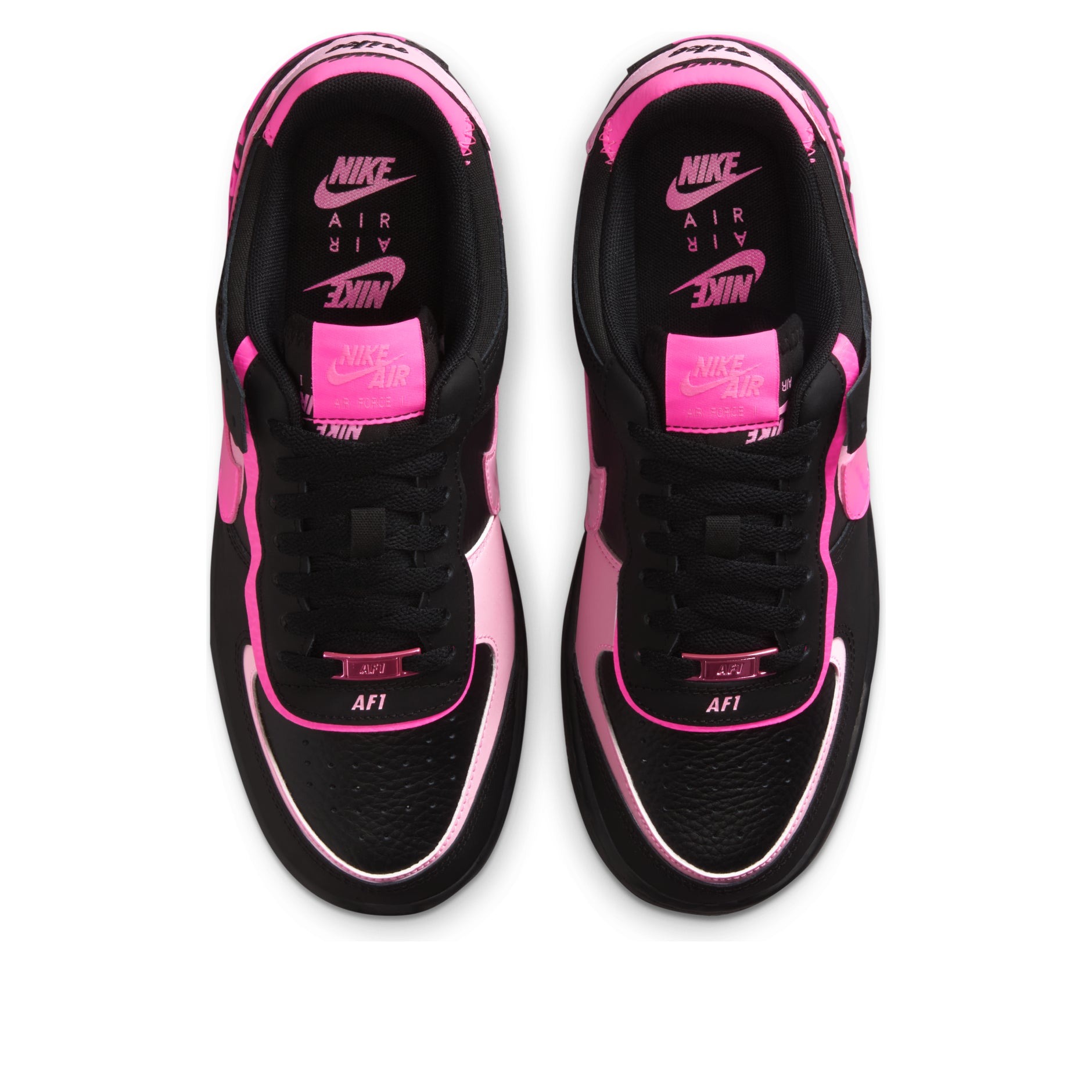The Nike Air Force 1 Low Shadow Black Pink Spell (Womens) features a Black/Pink Spell/Pink Blast colorway.