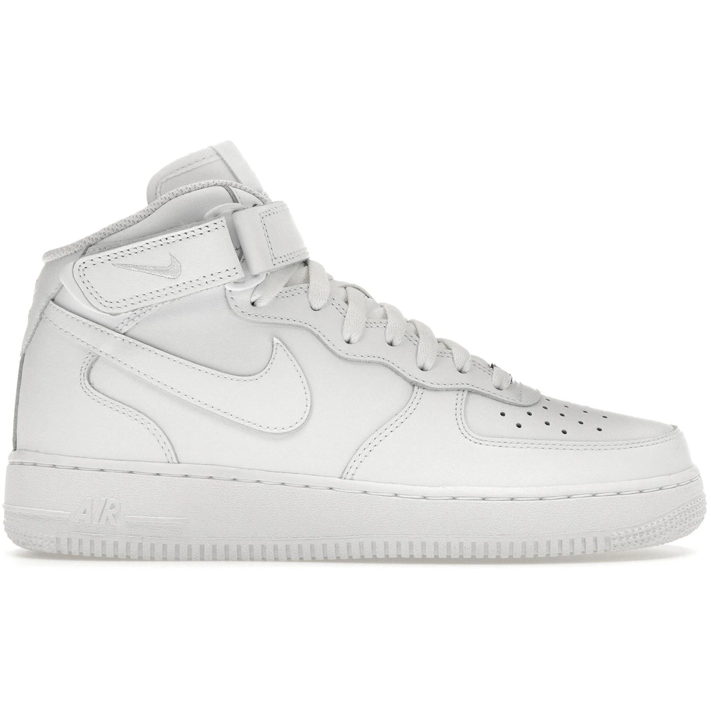 The Nike Air Force 1 Mid White ’07 features a smooth white leather upper with matching overlays and Swooshes. From there, a velcro strap with Nike Swoosh embroidery and a matching Air sole completes the design.The Nike Air Force 1 Mid White ’07 was re-released in December of 2015 and retailed for $95.