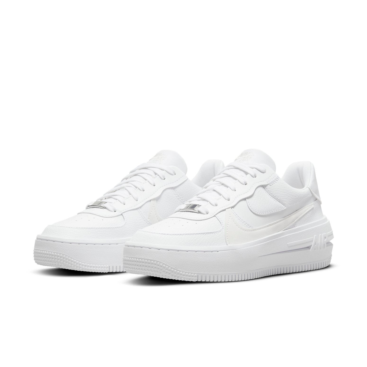 The Nike Air Force 1 PLT.AF.ORM Triple White (Women’s) is a women s exclusive platform sneaker from Nike s Air Force 1 PLT.AF.ORM lineup in a “Triple White” colorway.This Air Force 1 PLT.AF.ORM features a Triple White tumbled leather upper with extra layers of paneling on the lateral collar and cut-out Swooshes. Smooth leather is used on the tongue, Swooshes, and heel pull. Other details include Nike branding embroidered on the tongue and the rear, slim white laces, toebox perforations, “AF1” embroidered on the front, and branded Metallic Silver lace dubrae. Rounding out the design is a white platform AF1 sole unit with an elegantly shaped and elevated midsole.Our experts particularly love this sneaker s elegant and elevated design, which offers a modern twist on the classic Air Force 1 silhouette. The Nike Air Force 1 PLT.AF.ORM Triple White (Women’s) was released on June 9th, 2022, for a retail price of $100.