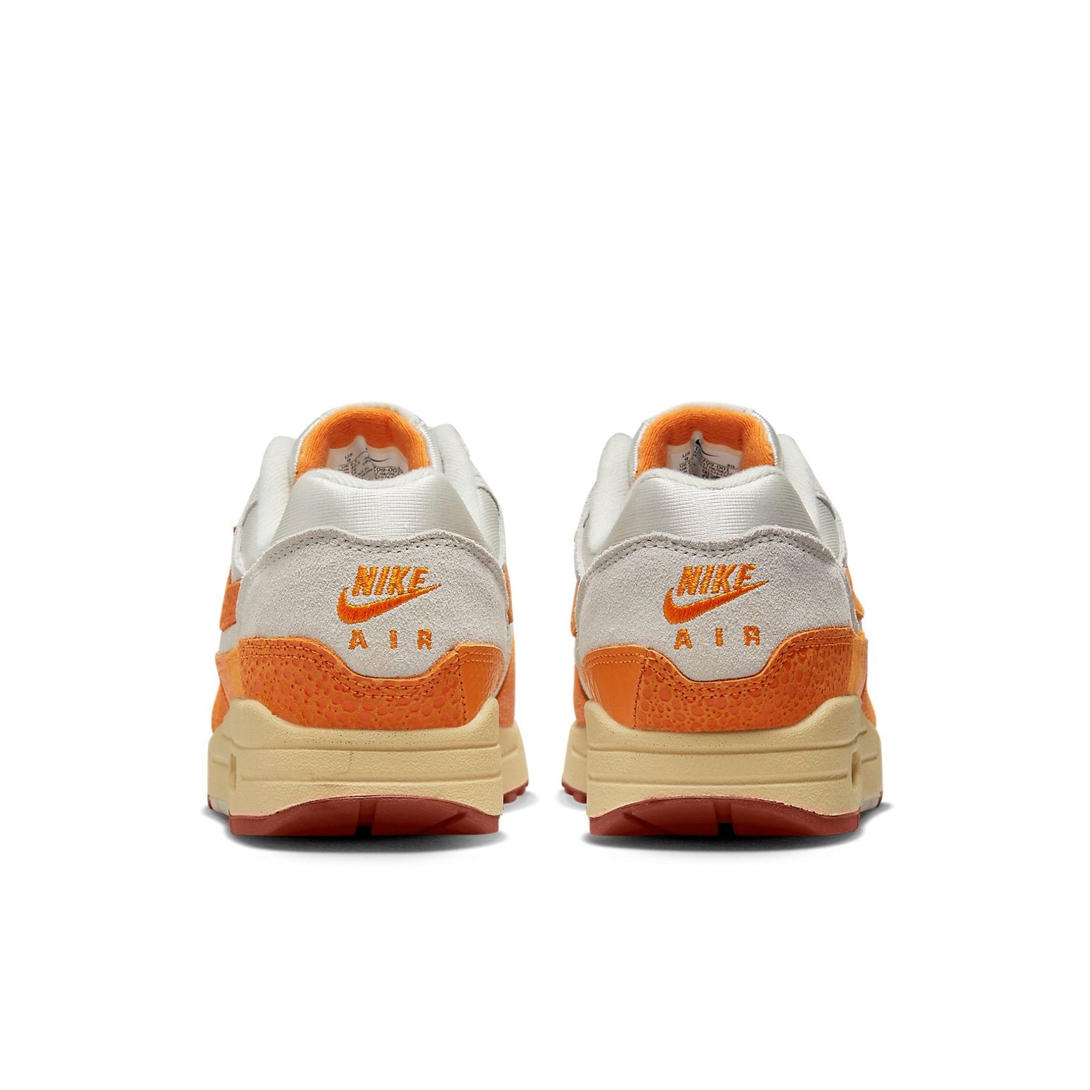 The Nike Air Max 1 Master Magma Orange W features a segmented mudguard with various materials and colors.This Air Max 1 model for women (W) has a base layer of white mesh and then displays a panel of grey suede to the heel and midfoot areas. The canvas and leather panels, the latter of which is available in both reptile leather and safari varieties, are covered by the Magma Orange tone on the wrap-around mudguard and Swooshes. The style is finished off by old orange, and burgundy outsoles and yellowed midsoles. The Nike Air logo is printed on its heel.The Nike Air Max 1 Master Magma Orange W debuted on December 27th, 2022. It retailed at $160.
