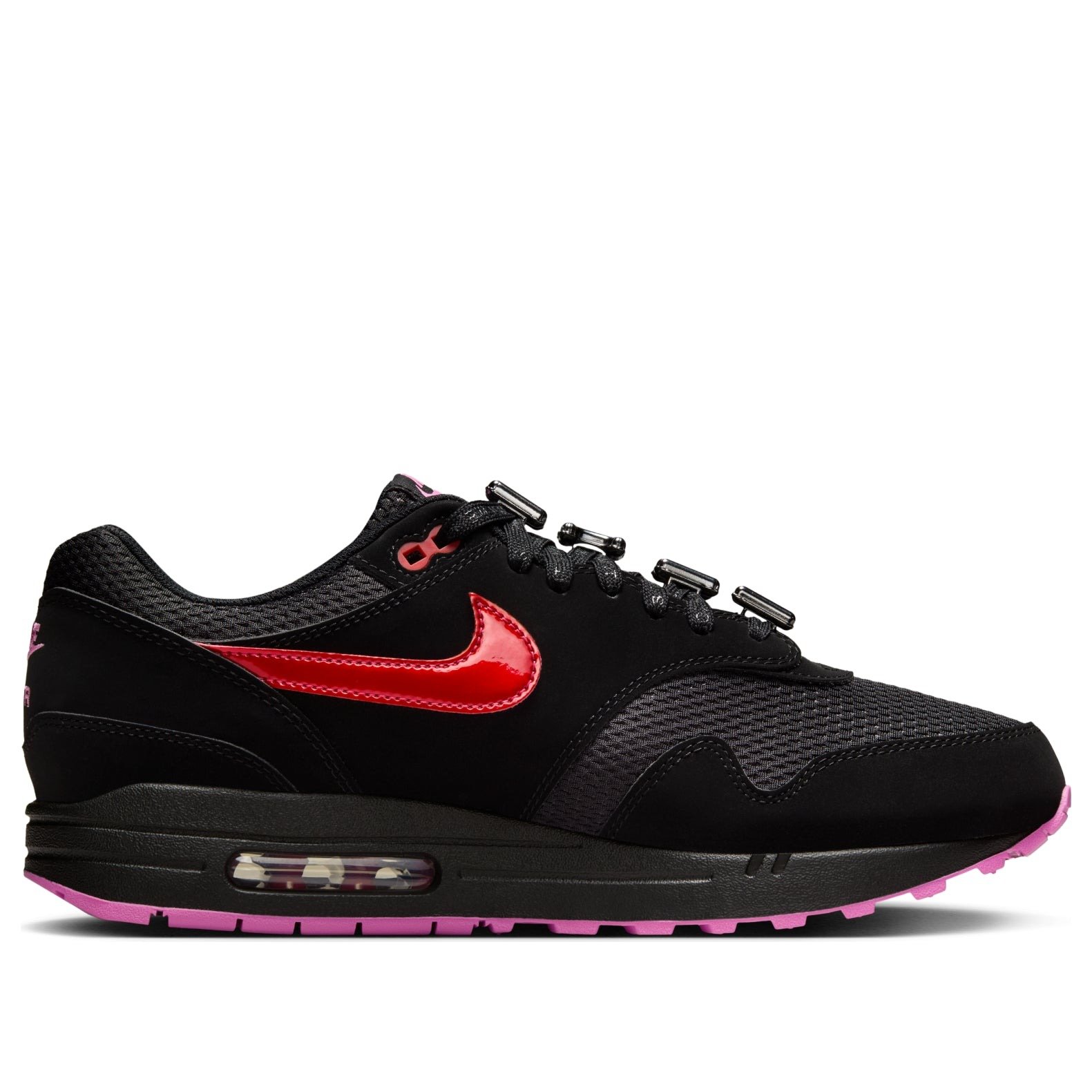 The Nike Air Max 1 PRM Valentines Day Black features a Black/Playful Pink colorway. This Nike Air Max 1 PRM was first released for $160 on February 07, 2025.