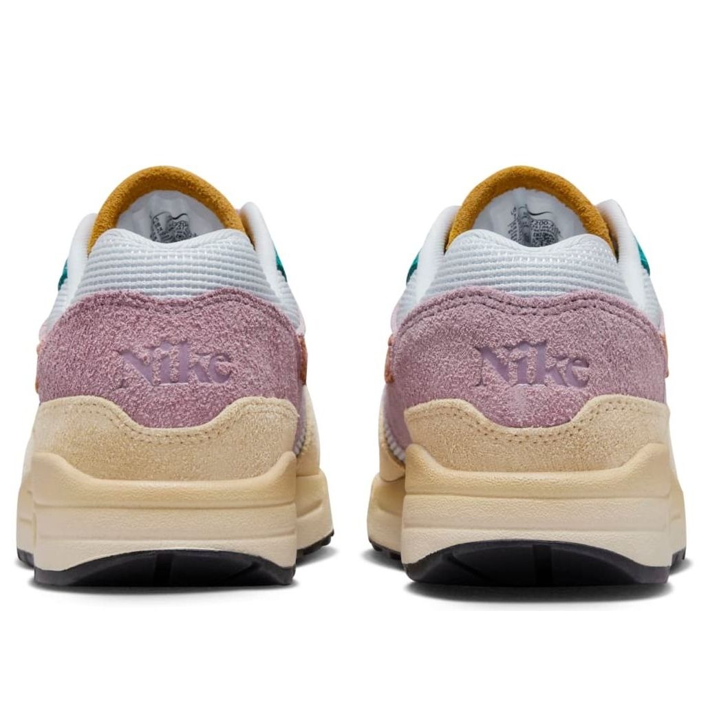 The Nike Air Max 1 Tan Lines (Women’s) features multi-color panels across the upper, giving the sneaker a patchwork appearance.Overlapping panels of suede stand out against the white mesh base. The suede overlays come in a variety of rich colors, including Plum Fog, Burnt Sunrise, Grain, violet, Deep Royal Blue, and Dust. Like the original Air Max 1 from 1987, this updated version boasts visible Air Max technology in the heel. However, the Nike branding is a change of pace from the usual fonts and logos. For example, the heel tab is embossed with stylized Nike lettering, while the suede tongue displays Nike in the same font.Our Newsole experts like the inclusion of a black rubber outsole, which contrasts the upper’s vibrant colors and provides traction. The women s size Nike Air Max 1 Tan Lines (Women’s) was released on December 5th, 2023, and retailed at $180.