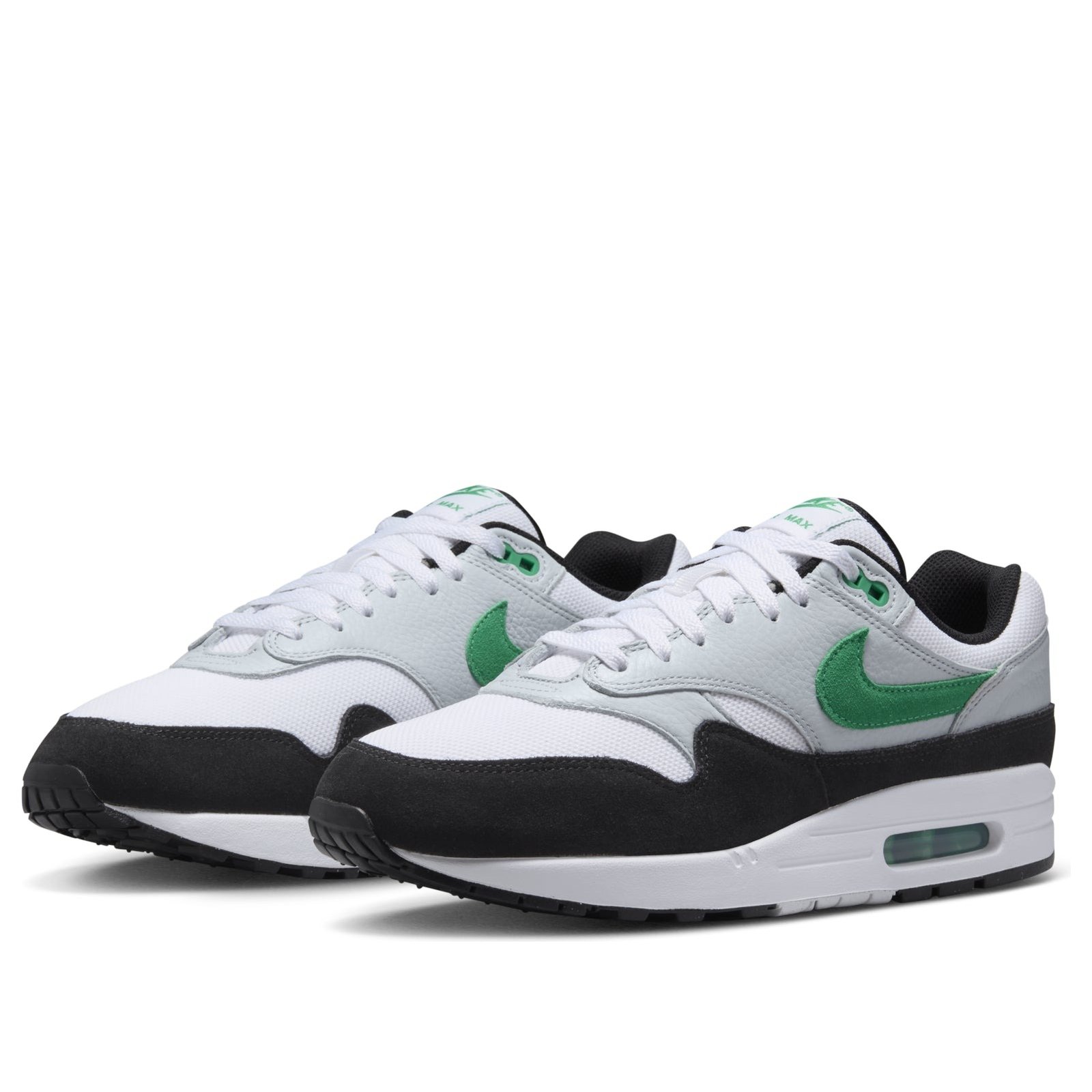 The Nike Air Max 1 White & Black Stadium Green blends crisp design with vibrant accents, giving us a reimagined look for the iconic Air Max line. This sneaker merges a classic design with daring, contrasting colors for a modern look and feel.The White & Black Stadium Green Air Max 1 by Nike features a white mesh base complemented by Pure Platinum overlays to create an elegant, layered sneaker. Stadium Green details highlight the Swoosh, mudguards, upper eyelets, and branding on the tongue and heel. Black accents appear on the outsole to improve the contrast. This updated take on the Air Max 1, originally designed by Tinker Hatfield in 1987, includes visible Air units in the white midsole.As experts, one thing we love about the Nike Air Max 1 White & Black Stadium Green is the premium mesh for better airflow and comfort and the toe cap. This sneaker retailed for $140 when it was released on April 1, 2024 .