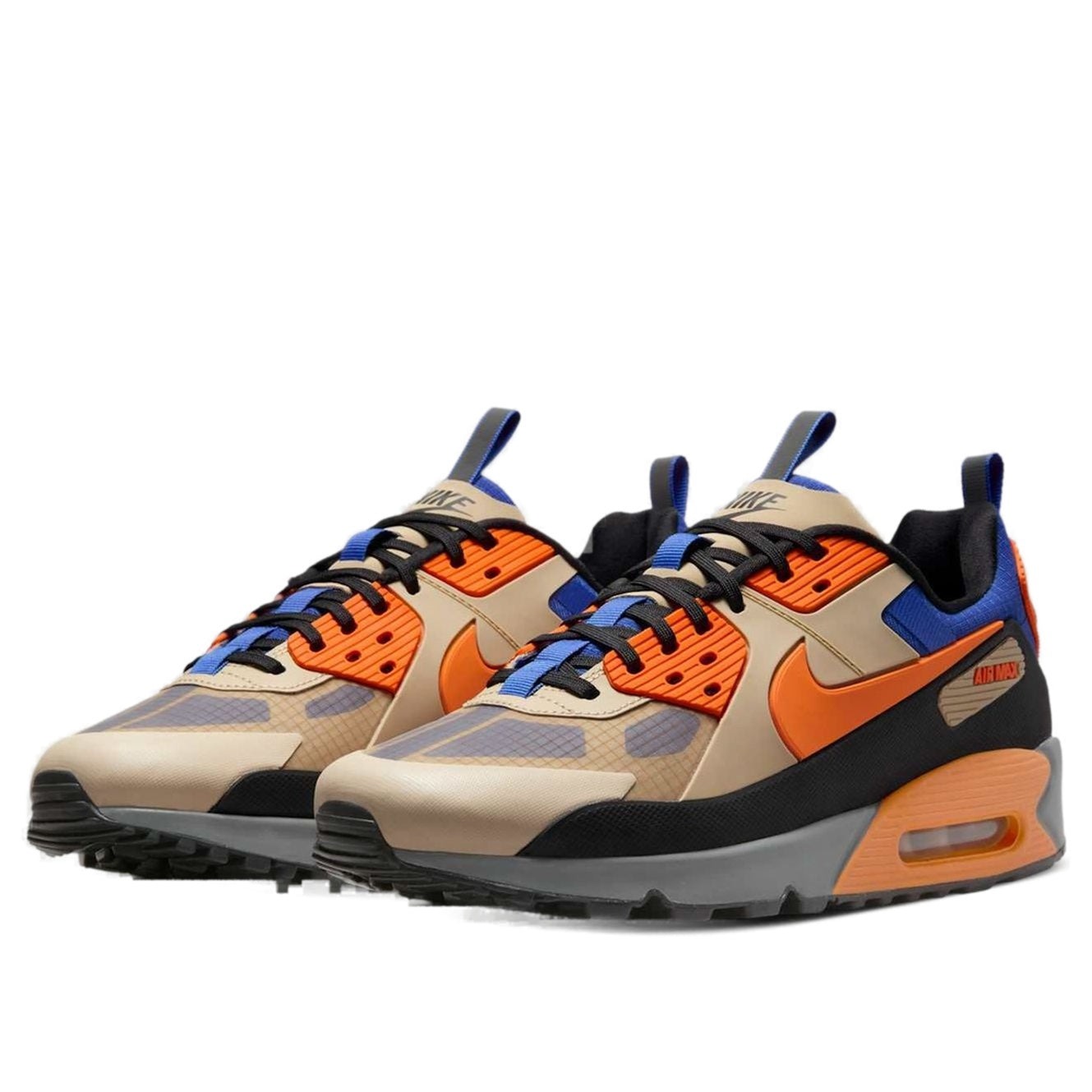 The Nike Air Max 90 Drift Mowabb features an upper crafted with durable mesh and overlays in rattan tones, accented by Hyper Royal Blue and Bright Mandarin orange pops. The transparent toe box reveals a woven pattern, contrasting with the grey foam midsole and black rubber outsole. Underfoot, this Air Max 90 Drift women s sneaker features the classic visible Max Air cushioning, delivering the comfort and bounce Air Max is legendary for. Details such as the armor-like overlays in rattan, black, orange, and blue, protective toe caps, and reflective pull tabs create a streetwear elegance. The Nike Air logo and Swoosh are present on the heel in black against the vibrant orange, as well as on the rattan tongue. What we praise the sneaker for most is the high-quality materials and the bold yet practical aesthetic. The color-blocking is easy on the eye, with bursts of color thoughtfully planned, featuring orange and vibrant blue, which create a balanced look. Released on December 20, 2024, the Nike Air Max 90 Drift Mowabb retailed for $160.