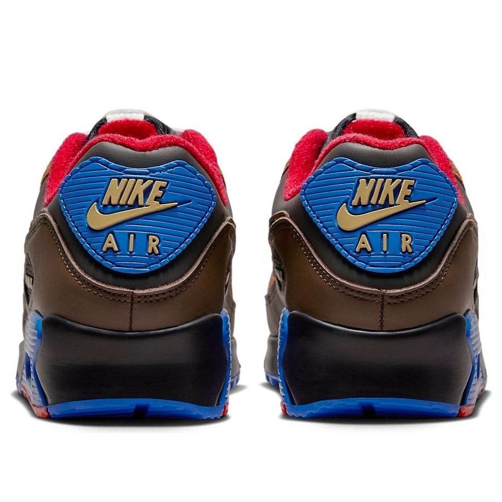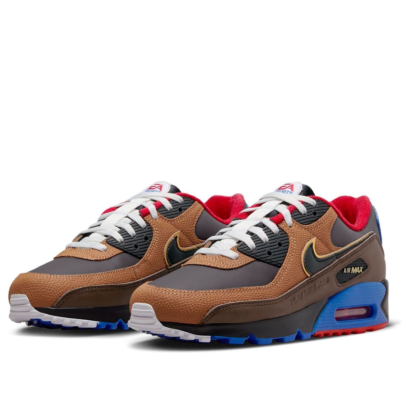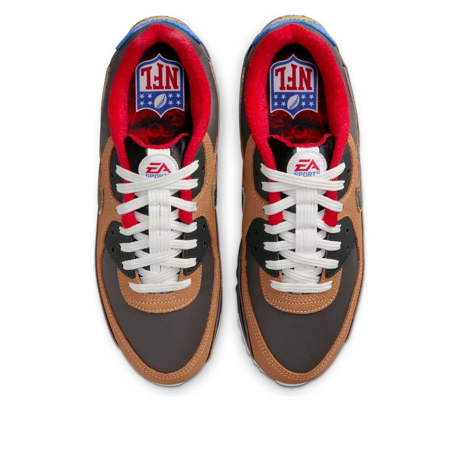 The Nike Air Max 90 EA Sports Play Like Mad updates the Air Max 90 silhouette with a multicolor-color and multi-material upper. It was released ahead of the launch of the Madden NFL 24 video game and celebrates American football.The EA Sports Play Like Mad Nike Air Max 90 has Velvet Brown leather on the upper, which is the color of a football, while the pebbled leather in Cacao Wow matches the texture of a pigskin ball. Splashes of Game Royal and University Red mimic the hues on the recognizable NFL logo, while the black foam midsole balances out the bright colors. Like other versions of the Air Max 90, this sneaker displays visible Air Max units in the heel and TPU panels by the laces.Our experts at Newsole like the “PLAY LIKE MAD” lettering embossed in the leather side panel. The Nike Air Max 90 EA Sports Play Like Mad was released on August 25, 2023, and sold for $140.