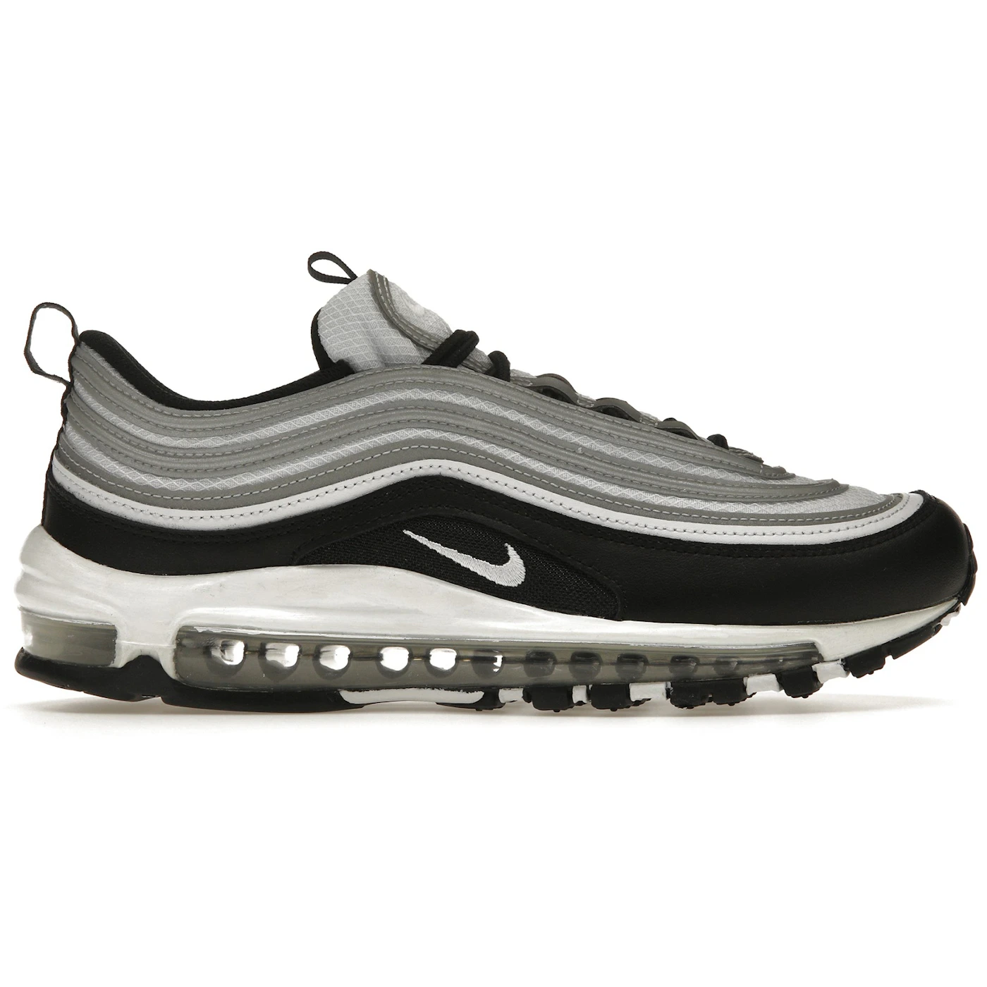 The Nike Air Max 97 Black Metallic Silver comes in a black and white colorway. The upper of the Air Max 97 Black Metallic Silver is crafted from a combination of leather, synthetic, and mesh materials, which provides a comfortable and durable fit. The collar and tongue are padded and help to keep the foot supported and stable. The shoe features a full-length Air-Sole unit that runs the length of the shoe, providing superior cushioning and shock absorption. The outsole features a tread pattern that is designed to grip the ground and provide stability and support during physical activity. We mainly love the Nike Air Max 97 Black Metallic Silver for its design. The shoe features reflective strips that run along the length of the shoe. These strips reflect light, giving the shoe a distinctive and futuristic appearance. This shoe was released on September 1st, 2022, at a price of $175.