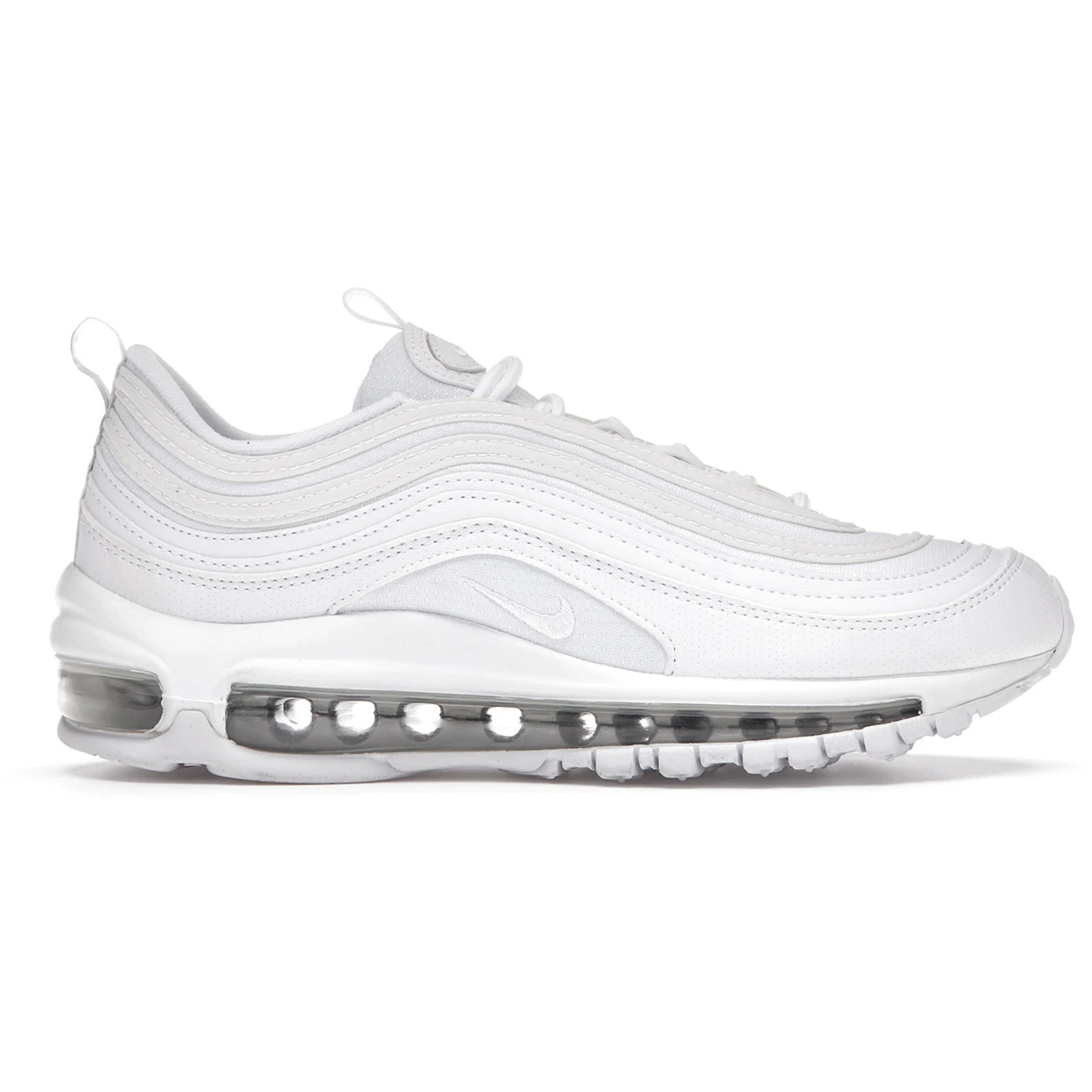 The White and Metallic Silver-dressed Nike Air Max 97 White Metallic Silver GS is a sneaker designed for grade school kids.Some of the key features of the White Metallic Silver GS Nike Air Max 97 include a lace-up closure system for a secure and adjustable fit, Nike brandings on the tongue, heel, and sides of the shoe to add to its aesthetic appeal, a predominantly White colorway with Metallic Silver accents, giving it a clean and futuristic look and the rubber outsole that provides optimal traction and durability, making it suitable for various surfaces.What we believe is the notable feature of this Nike Air Max 97 White Metallic Silver GS that was released on to the market on 10th April 2019 with a suggested retail price of $155 is its visible full-length Air unit, that runs along the midsole to offer exceptional cushioning and impact absorption for a comfortable stride.