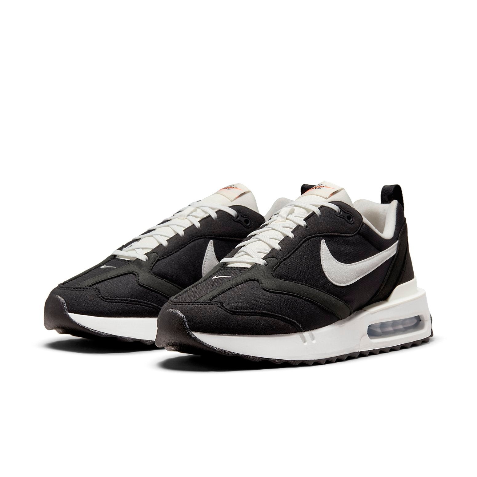 The Nike Air Max Dawn Blak White offers a running shoe with comfort and support that feels great for everyday wear and style that pops whether youre on the track or the street. The Blak White iteration of the Nike Air Max Dawn features an upper with a base of black textile overlaid with black synthetic suede. A white synthetic Nike swoosh peaks out from under a heel overlay and courses across the side panel. A heel tab for easy on/off is black, while the laces and tongue are white. The thick white foam midsole houses a pill-shaped Max Air unit and provides superior cushioning. The black rubber outsole undulates in a ripple pattern for shock absorption and traction. The aspect of these shoes that we appreciate the most is the environmentally friendly effort that went into their creation. This pair of kicks is made with a minimum of 20% recycled material, including 5% recycled Nike grind rubber in the outsole. The Nike Air Max Dawn Blak White was released on March 8, 2022, for $100 retail.