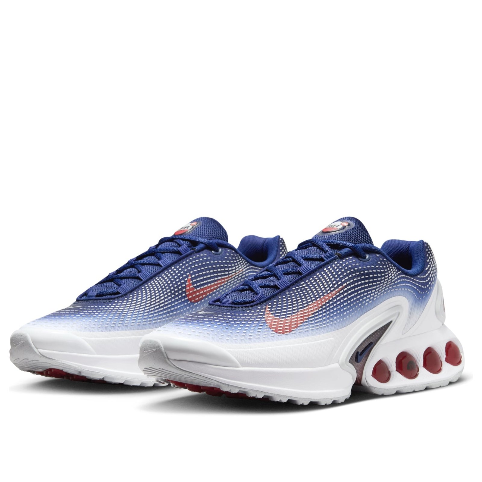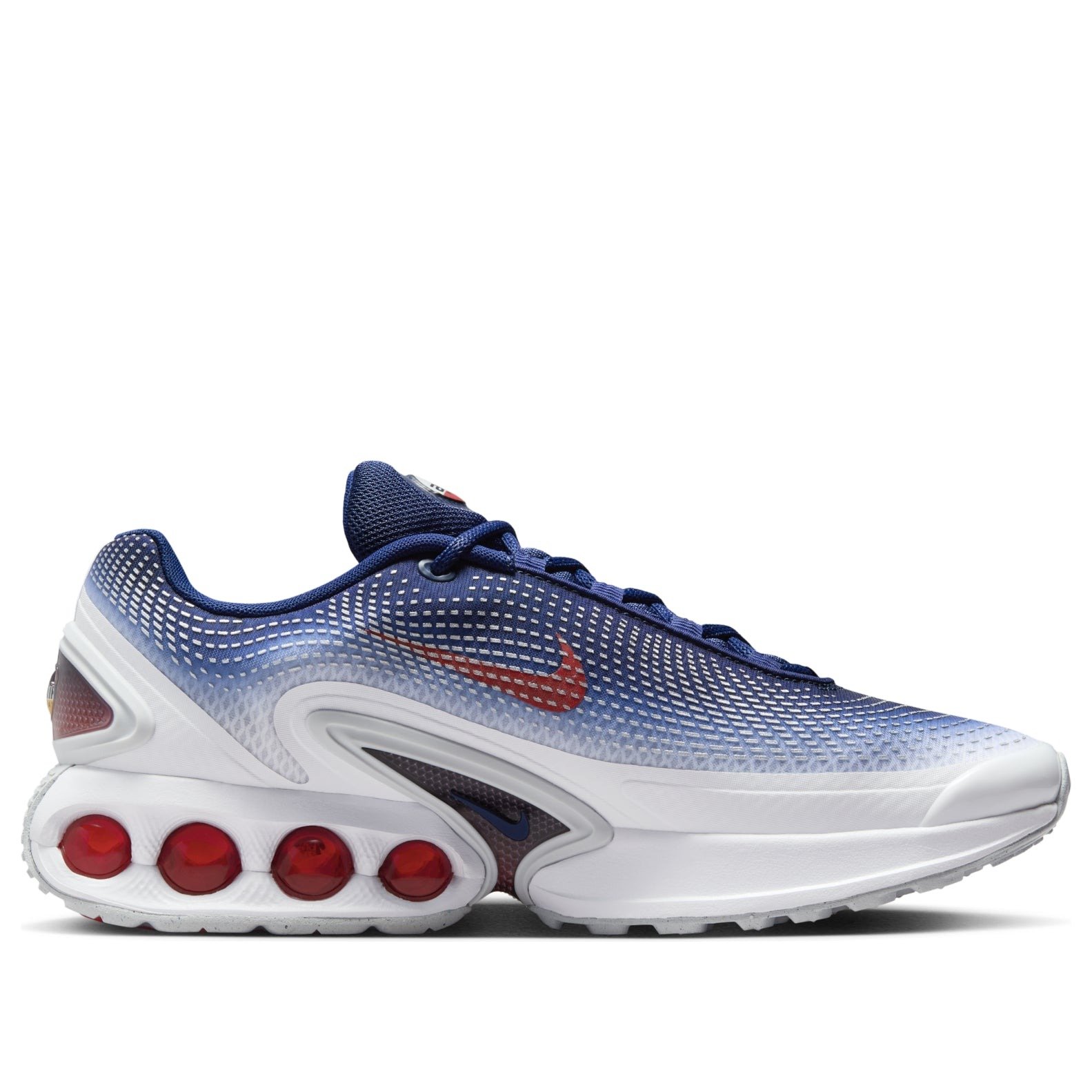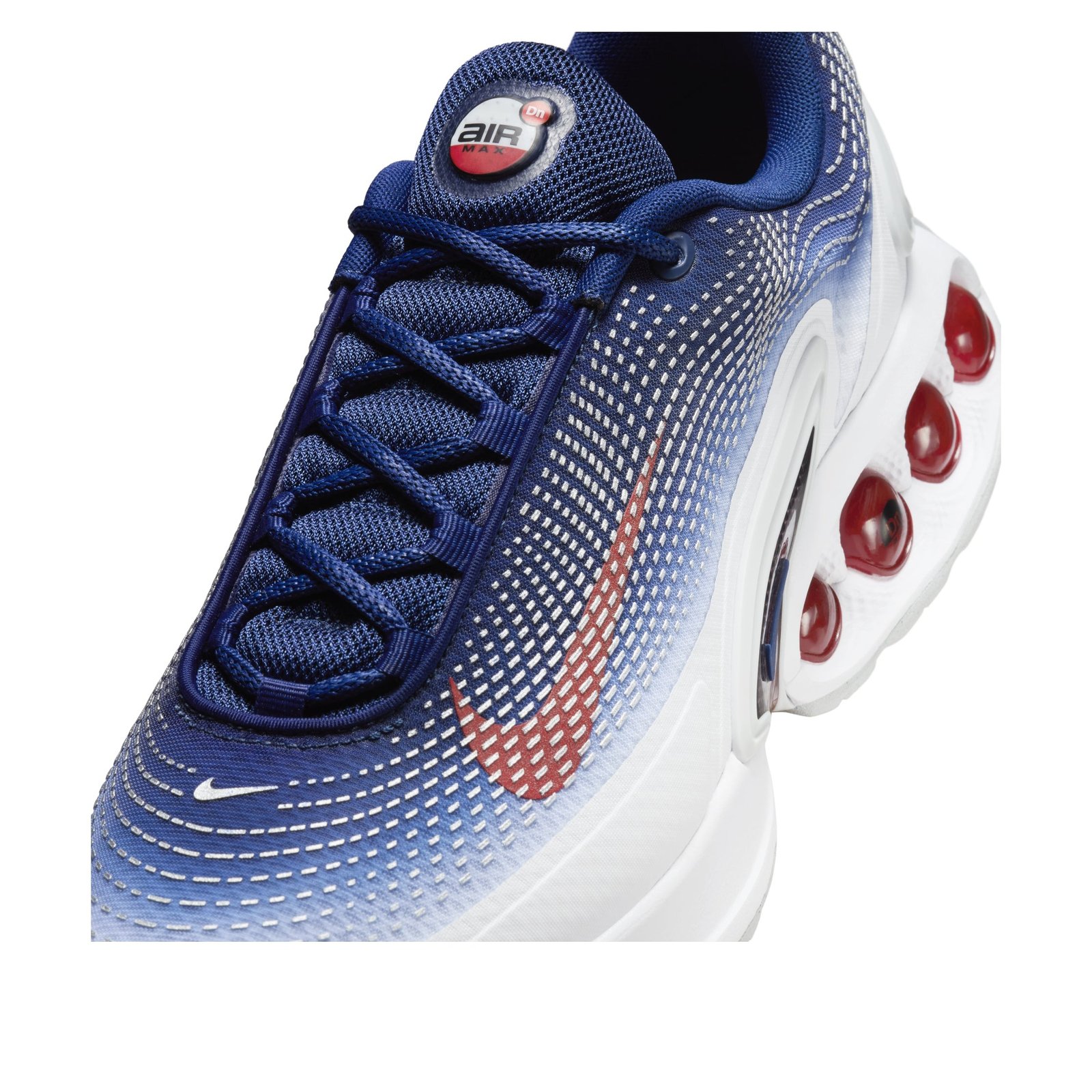 The Nike Air Max Dn SE Olympics features a White/Blue Void-Metallic Silver-Bright Crimson colorway. This Nike Air Max Dn SE was first released for $170 on July 24, 2024.
