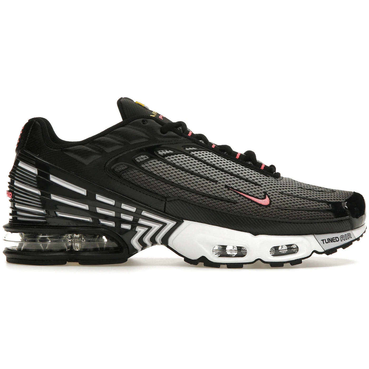 The Nike Air Max Plus 3 Black White Chamois features a Black/White/Chamois/Sunset Pulse colorway. This Nike Air Max Plus 3 was first released for $185 on March 21, 2024.
