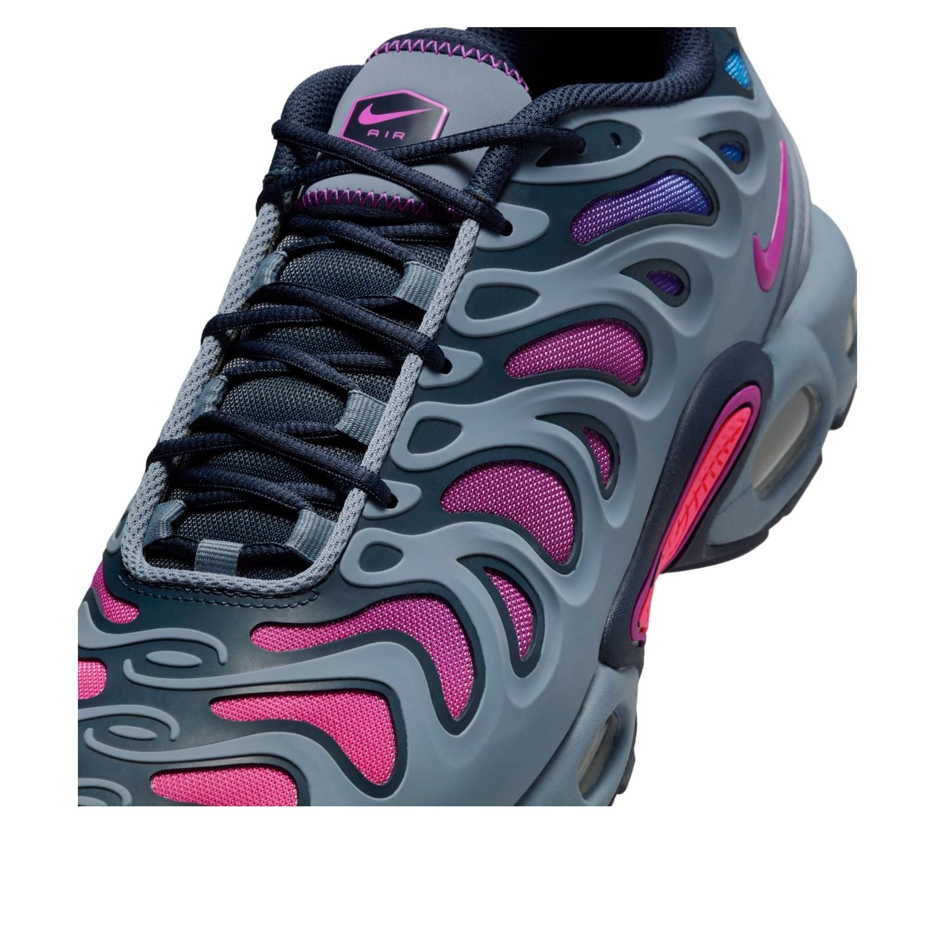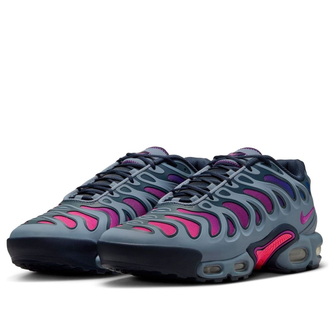 The Nike Air Max Plus Drift Ashen Slate features a Ashen Slate/Obsidian/Hyper Pink/Vivid Purple colorway. This Nike Air Max Plus Drift was first released for $185 on July 22, 2024.