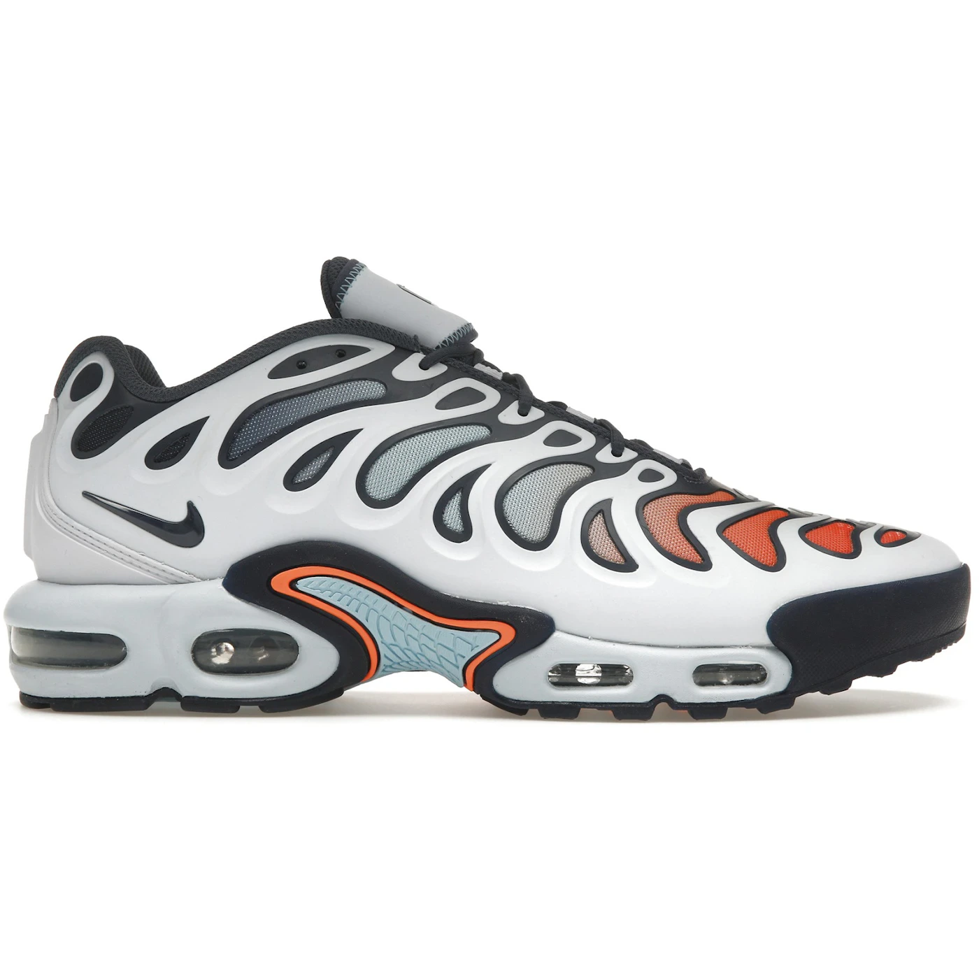 The Nike Air Max Plus Drift Football Grey Thunder Blue features a Football Grey/Aquarius Blue/Total Orange/Thunder Blue colorway. This Nike Air Max Plus Drift was first released for $185 on April 19, 2024.