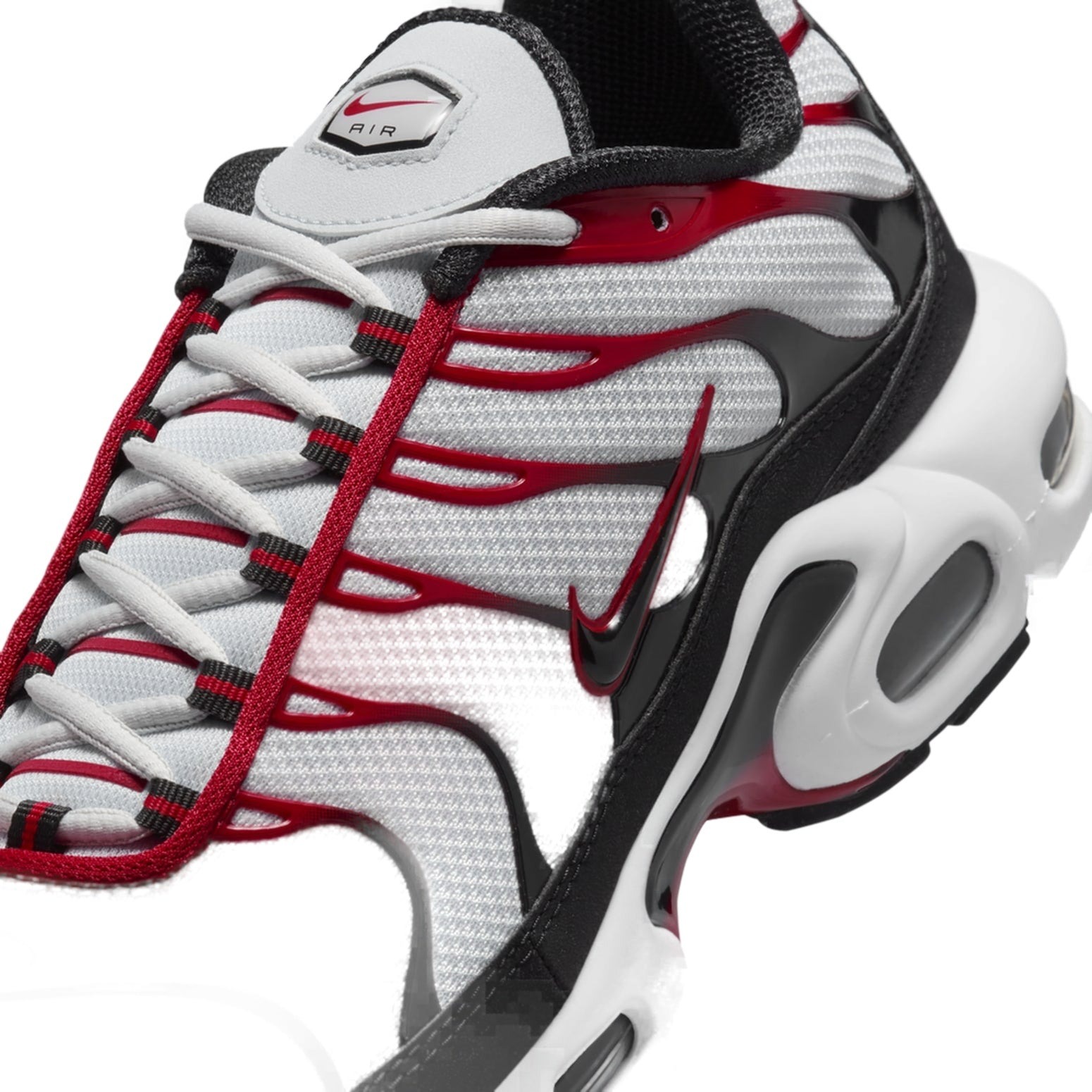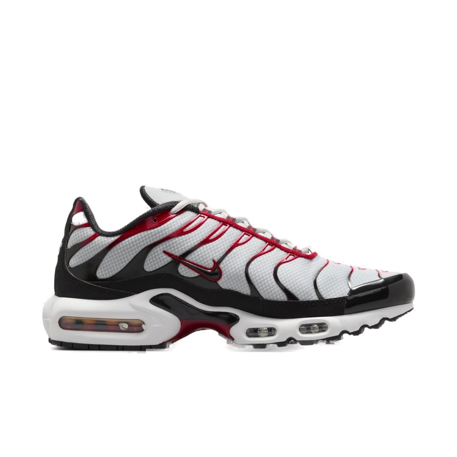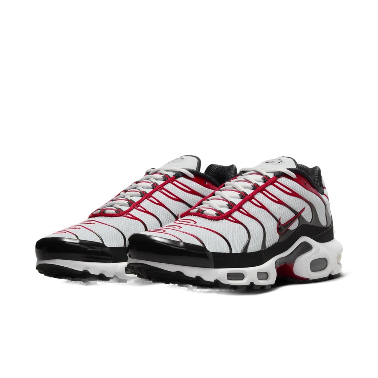 The Nike Air Max Plus Pure Platinum Black University Red features a Pure Platinum/Black/White/University Red colorway. This Nike Air Max Plus was first released for $175.