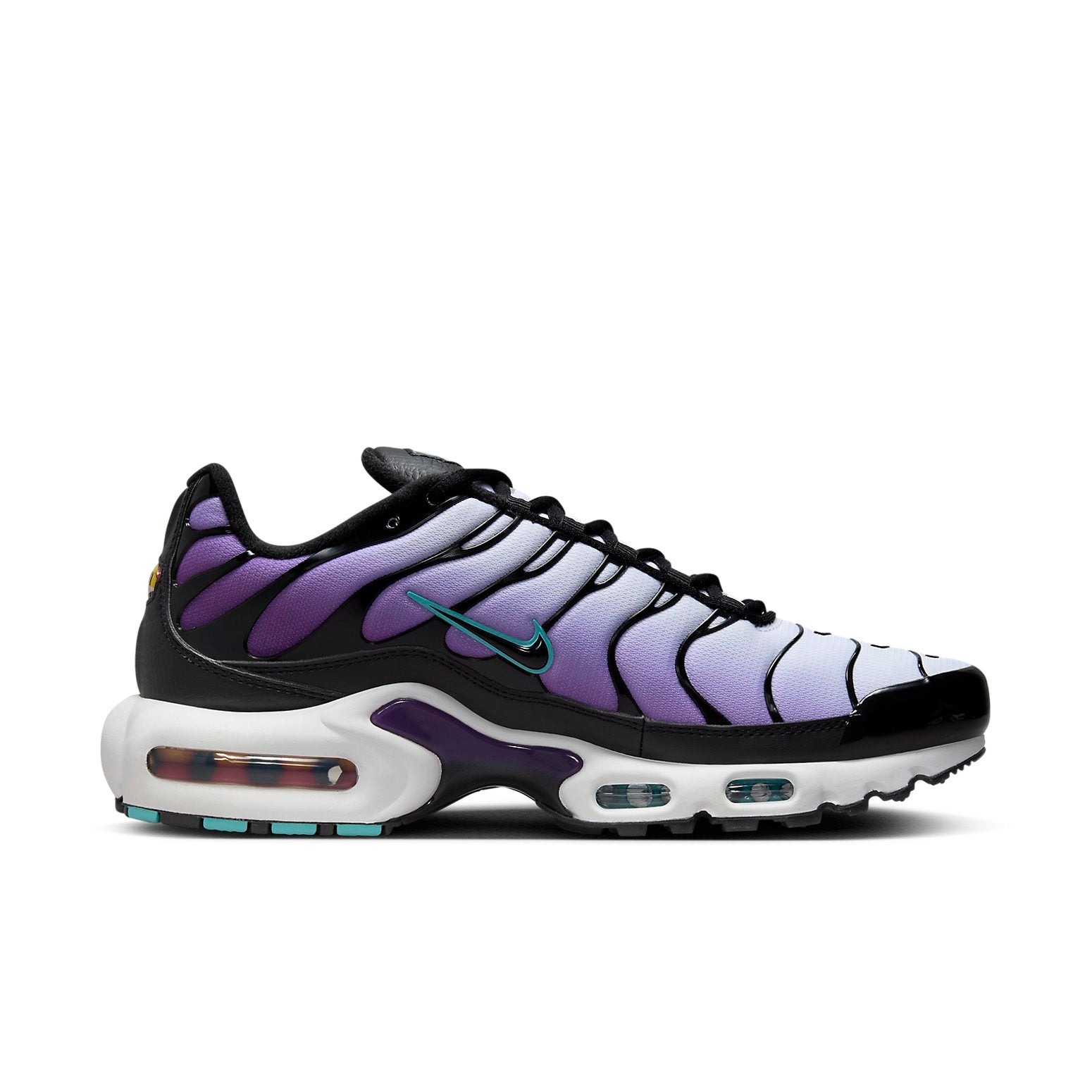 The Nike Air Max Plus Reverse Grape updates the iconic sneaker created by Sean McDowell with a purple gradient colorway. The smooth mesh upper fades from Disco Purple to white and back again.Like other iterations of the Nike Air Max Plus, the “Reverse Grape” version features a black TPU cage that resembles ripples or waves. The TPU cage gives the upper structure and complements the black leather overlays and the shiny leather toecap. Teal Nebula outlines the small Swoosh logos on the side panels and adds a splash of color to the upper. Meanwhile, the visible Air Max units in the heel and forefoot come in Space Purple and Teal Nebula. They provide responsive cushioning and give the midsole a slightly chunky appearance.Our Newsole experts like the way the sneaker stays true to its Air Max Plus roots while introducing a modern color palette . The Nike Air Max Plus Reverse Grape was released on August 29th, 2023, and sold for $175.